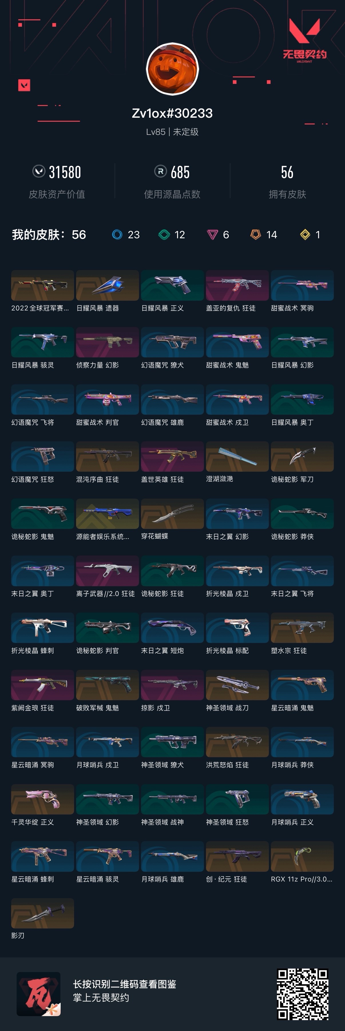 皮56 盖亚ak/紫金ak/混沌ak/流浓ak/塑水ak/侦查幻影/22幻影/电玩幻影/莲花正义/影刃/显卡爪/扇子/穿花蝴蝶/破败鬼魅;盖亚的复仇 狂徒,掠影 戍卫,洪荒怒焰 狂徒,源能者娱乐系统 幻影,侦察力量 幻影,紫阙金琅 狂徒,混沌序曲 狂徒,