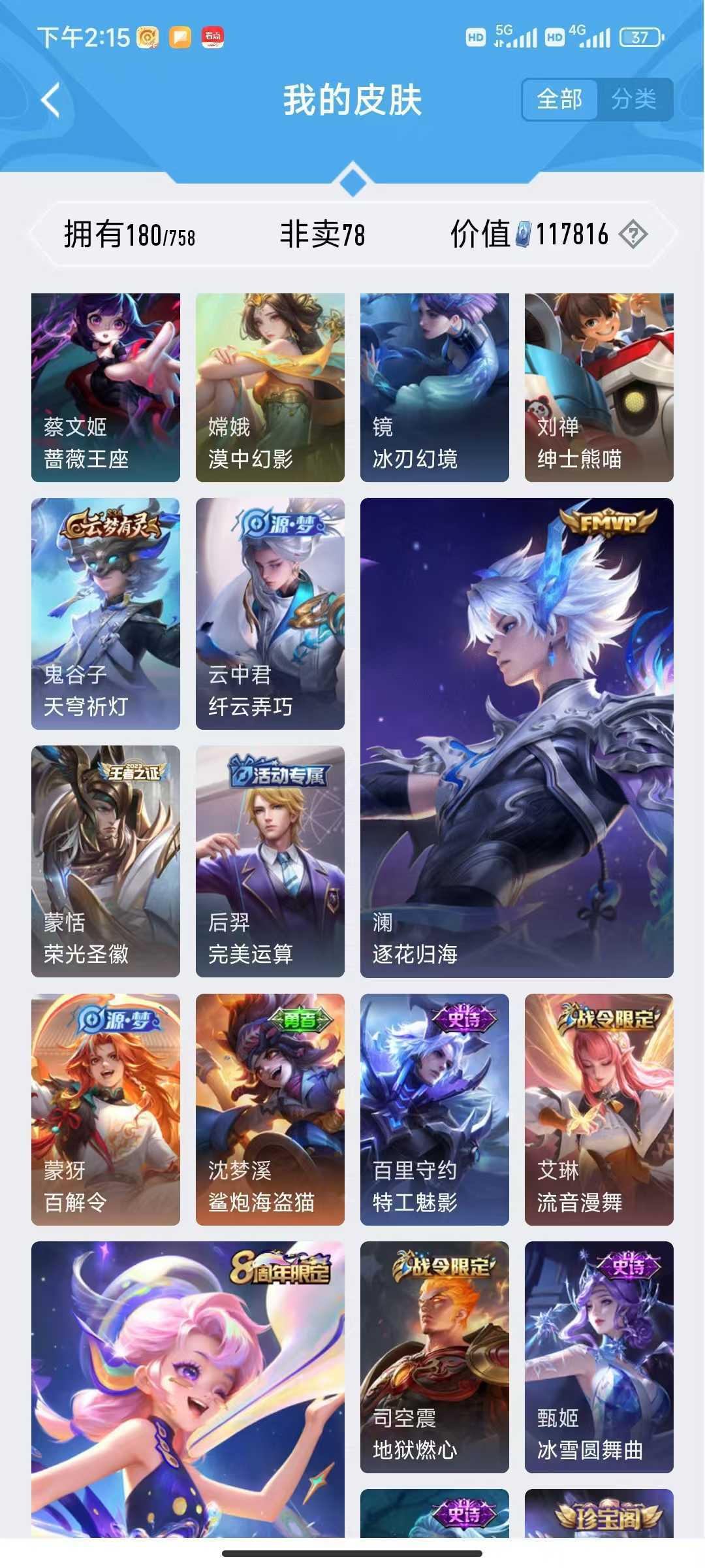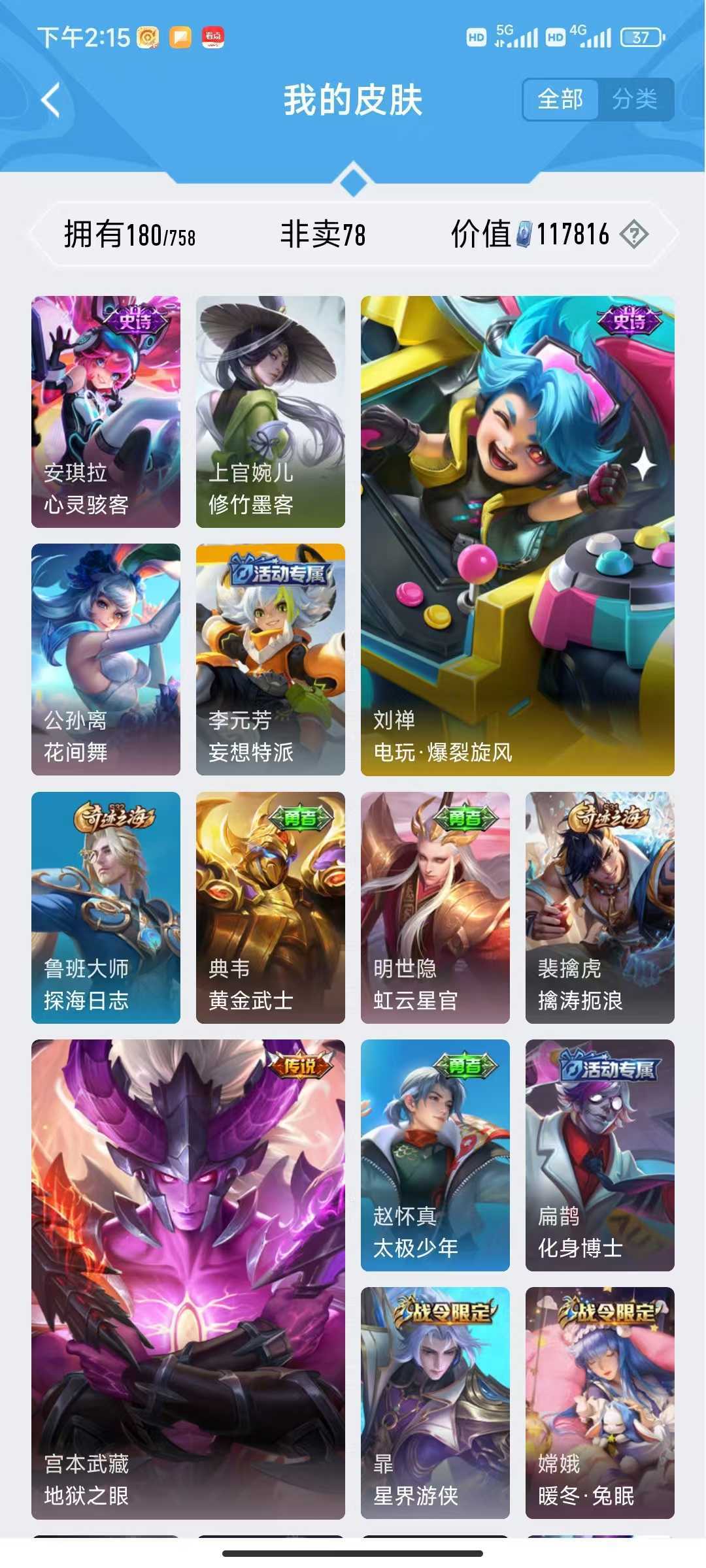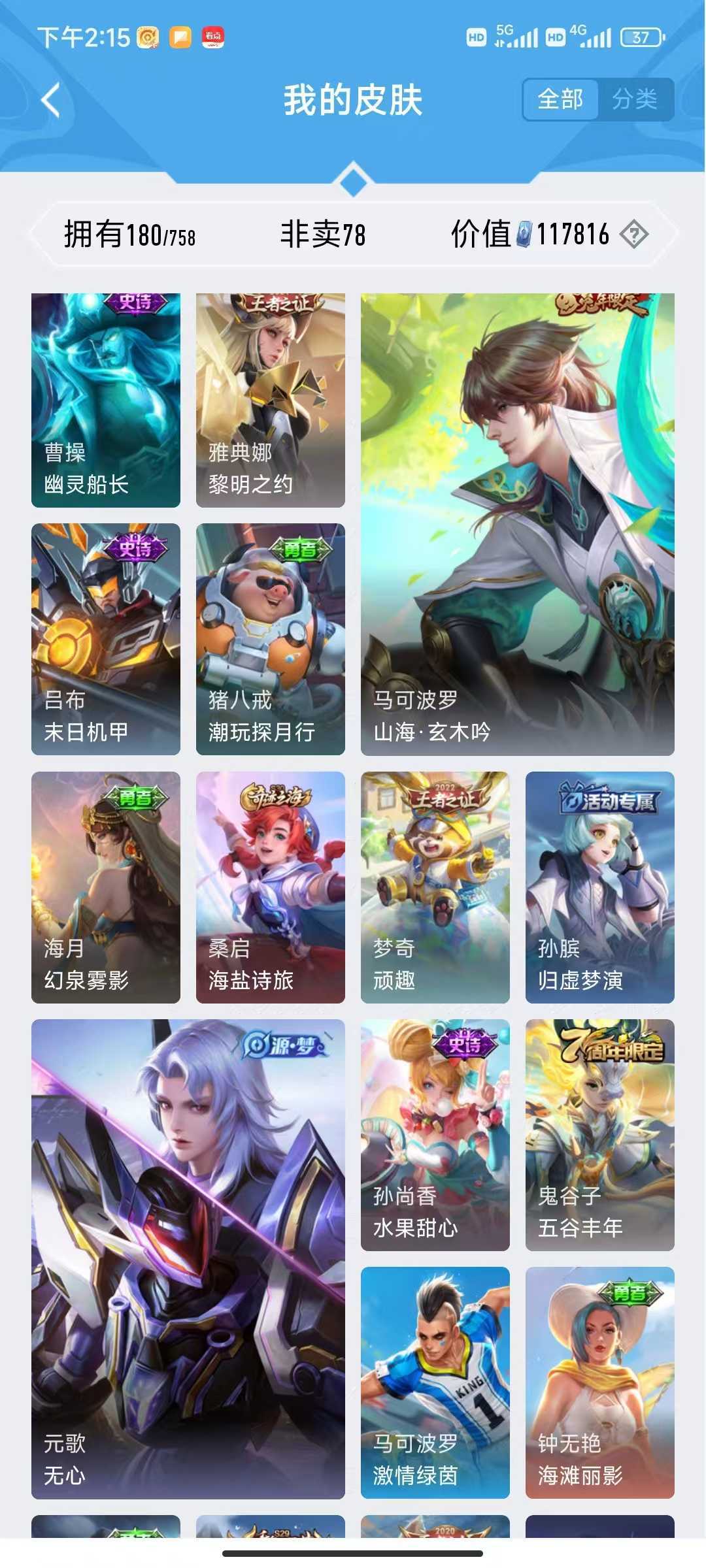 扫码登录❁包天/周划算❁V10❁590+皮肤❁孙悟空无双无相❁青铜小兵皮❁伽罗典藏❁19颗荣耀水晶❁蛇年3套❁年限34套❁3无双❁限定一堆❁手Q212区❁已禁言