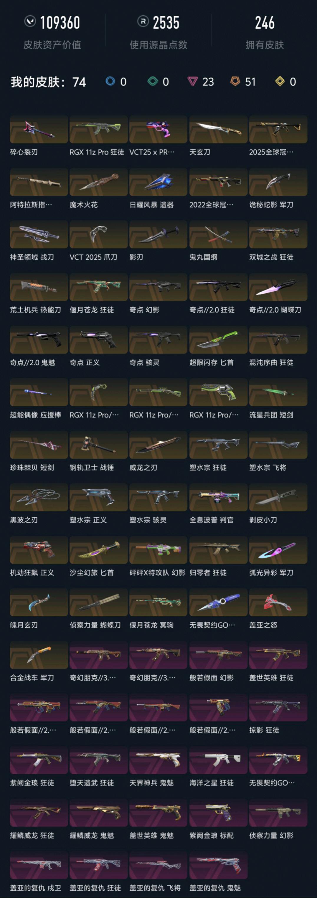 1;黑波之刃,剥皮小刀,威龙之刃,VCT 2025 爪刀,盖亚的复仇 狂徒,掠影 狂徒,侦察力量 幻影,