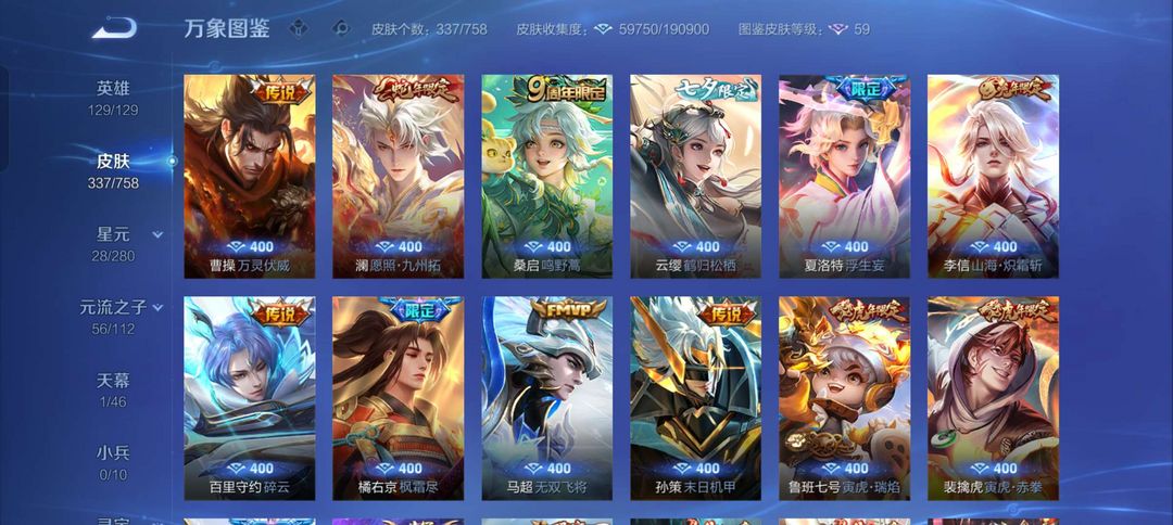 【非云直上】537满皮满典藏12星元◎鲁班新皮◎虞姬星元◎天使星元◎白金战神◎妲己绝版星元