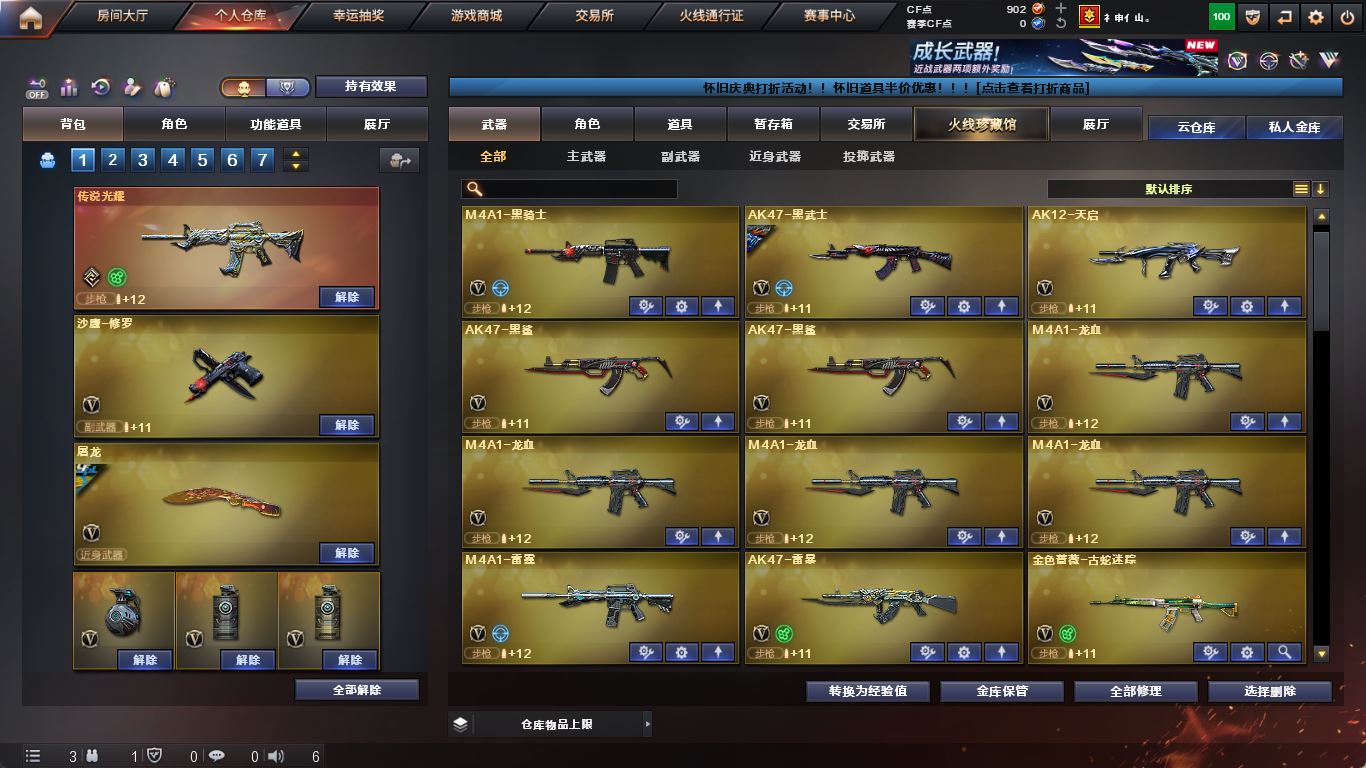 【传说灵眸】【M200-幻神+幻神-荣耀世冠白鲨】【Kar98K-星神+音效卡】【传说光耀】【QBZ03-金色蔷薇】【生化 盘龙 炼狱 6烈龙】【裁决】【毁灭+音效卡+毁灭-冠军之怒】【极光】【火麒麟+火麒麟-even】【黑龙+音效卡】【雷神+音效卡+雷神-传奇n9+雷神-冠军之魄+雷神-白鲨14冠军】【6黑骑士+音效卡】【王者之魄 王者之武 王者之魄 王者之怒 王者之决】【千变 黑武士 天启 黑鲨】【9手枪 修罗*5 cop雷霆 usp雷暴】【13近战 屠龙*2 龙啸 擎天 麒麟刺*3 斩神刀雷暴 屠龙动感闪耀 王者之啸】【手雷 雷霆雷*6 雷暴雷*5】【四防 司雨 王者潘多拉】【Kar98K-星神音效卡 毁灭音效卡】;USP-雷暴,隼,RPK-盘龙,QBZ03-金色蔷薇,M200-幻神,Scar Light-白虎,传说灵眸,