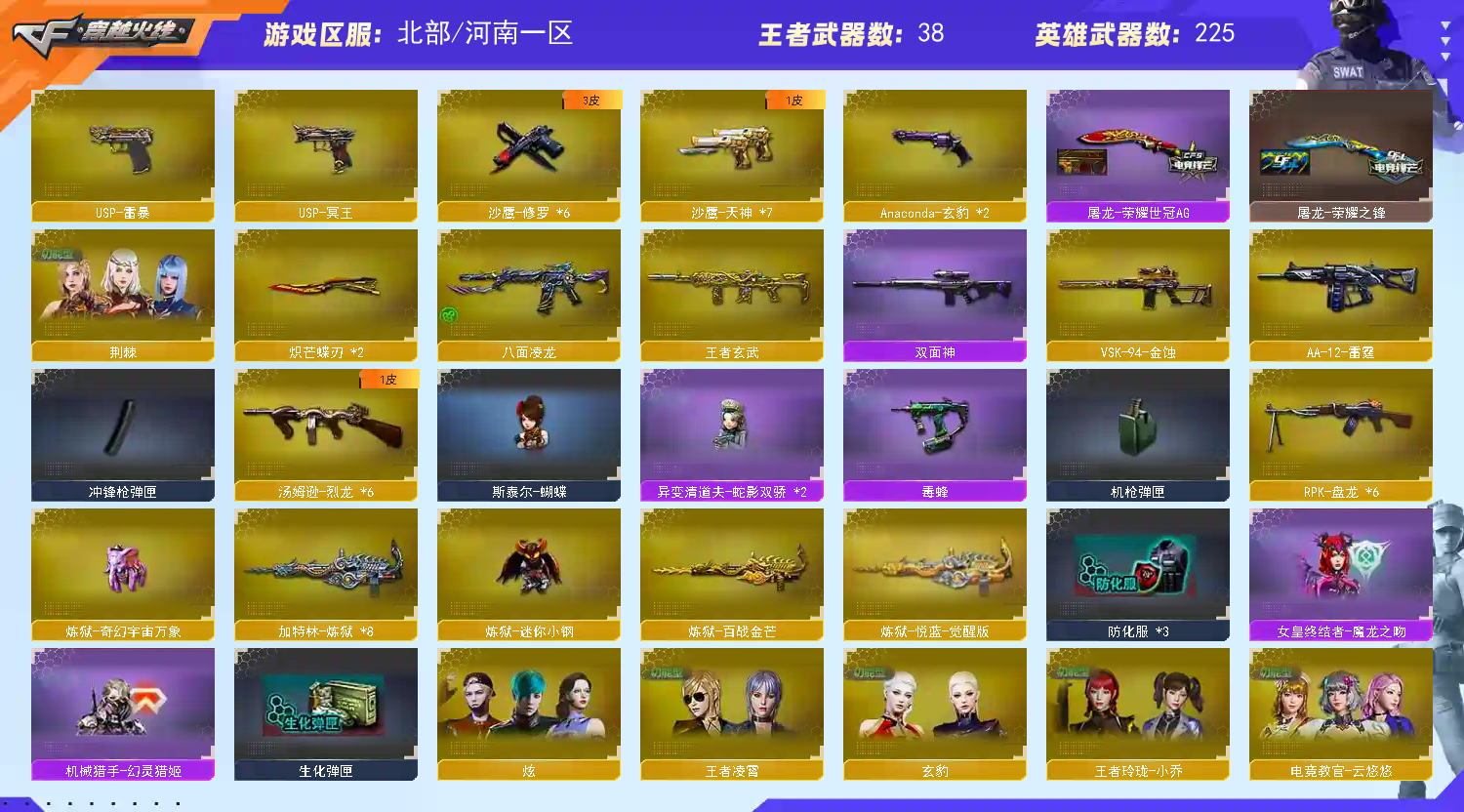 首页 > 租号大厅 > 穿越火线 > 网通区/河南一区 > 5️⃣三花聚顶🔥全装爆破生化号🔥幻神三件套裁决三件套白虎qbz三件套六盘六烈三蝴蝶泡泡象双蝴蝶刀