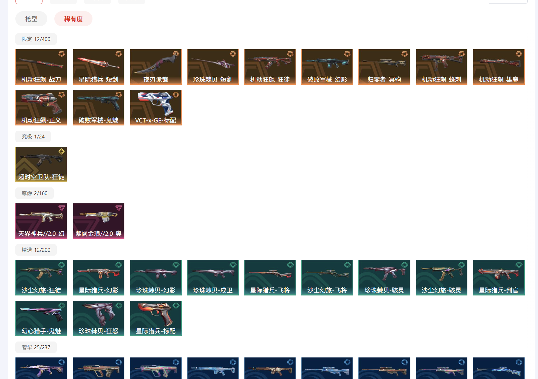 可排位 英雄25 武器皮肤数量52;天界神兵//2.0 幻影,机动狂飙 蜂刺,归零者 冥驹,