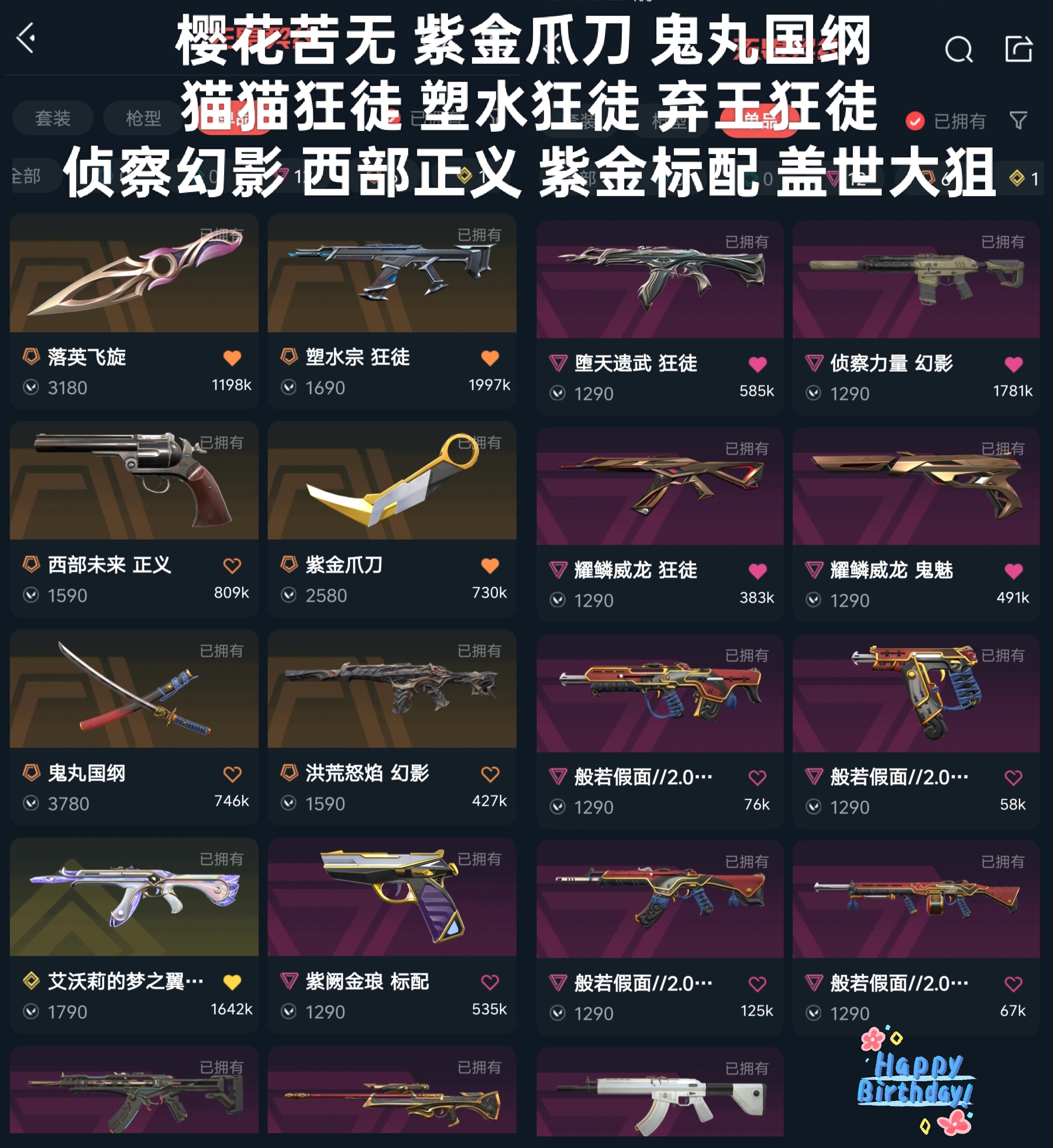 首页 > 租号大厅 > 无畏契约-wegame > wegame/wegame > 秒解冻💓樱花苦无 紫金爪刀 鬼丸国纲💓猫猫狂徒 塑水狂徒 侦察幻影💓极品女号💓黑铁青铜