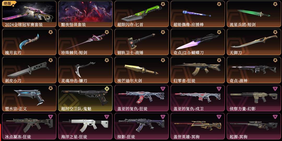 可排位✨24冠军黯夜怪谈套✨奇点蝴蝶剥皮小刀天御刀魄月玄刃✨归零盖亚掠影冰点鱼缸狂徒✨侦察幻影