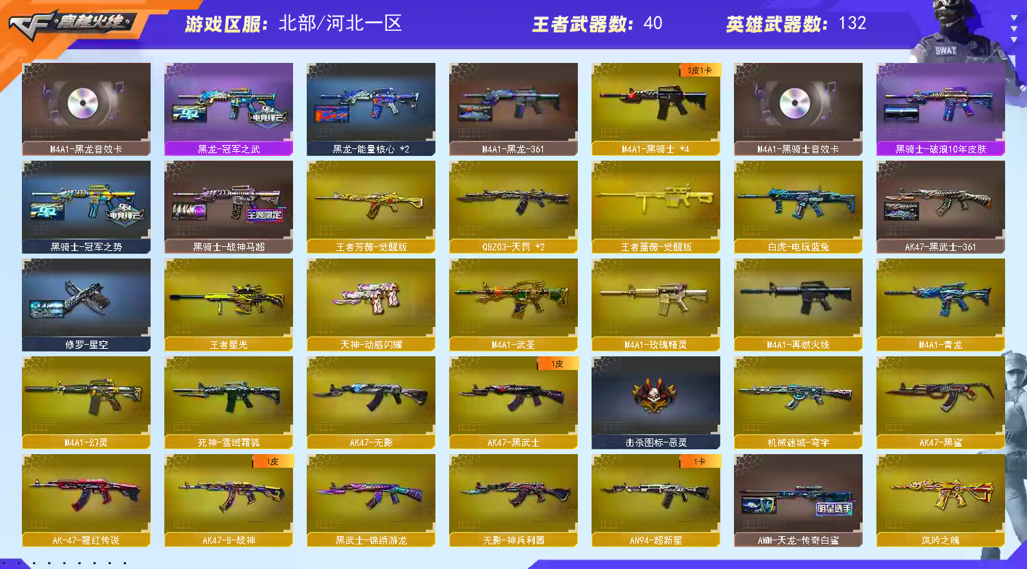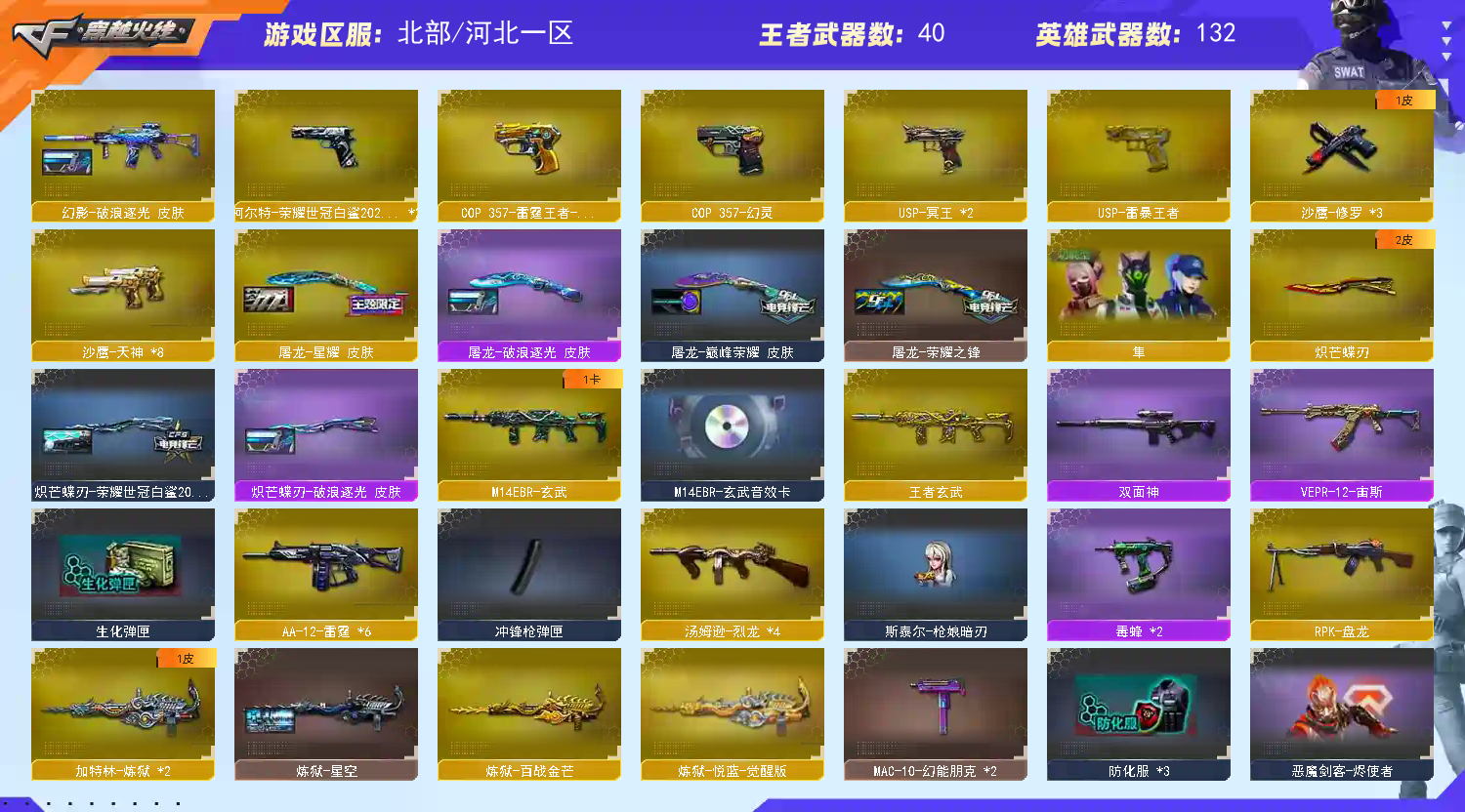 你好,租赁本账号需遵守以下规则: 1. 禁止使用鼠标宏、DMA、外挂等作弊工具,违者将被起诉索赔; 2. 订单即将结束时,禁止开启排位赛,若导致账号禁赛将被永久拉黑; 3. 有问题请填写真实理由,禁止无故撤单、恶意撤单或排位离线,违者将被拉黑 ⚠️ 特别提醒:恶意开挂导致账号封禁的,将被起诉至法院索赔。 --- ⚠️ 特别提醒:恶意开挂导致账号封禁的,将被起诉至法院索赔。 --- ⚠️ 特别提醒:恶意开挂导致账号封禁的,将被起诉至法院索赔。 ---;USP-雷暴王者,柯尔特-荣耀世冠白鲨2023,传说幽冥,炽芒蝶刃,隼,RPK-盘龙,QBZ03-金色蔷薇,