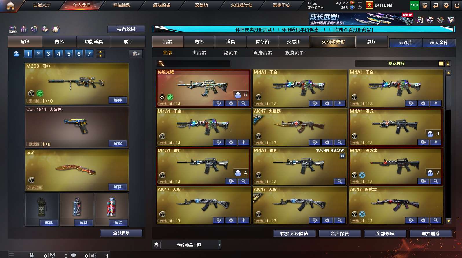 首页 > 租号大厅 > 穿越火线 > 电信区/南方大区 > 4炫金 3王者✨传说光耀✨幻神✨裁决✨者之决/怒✨朱雀✨青龙✨✨盘龙 炼狱 6烈龙✨王者瞳闭月羞花