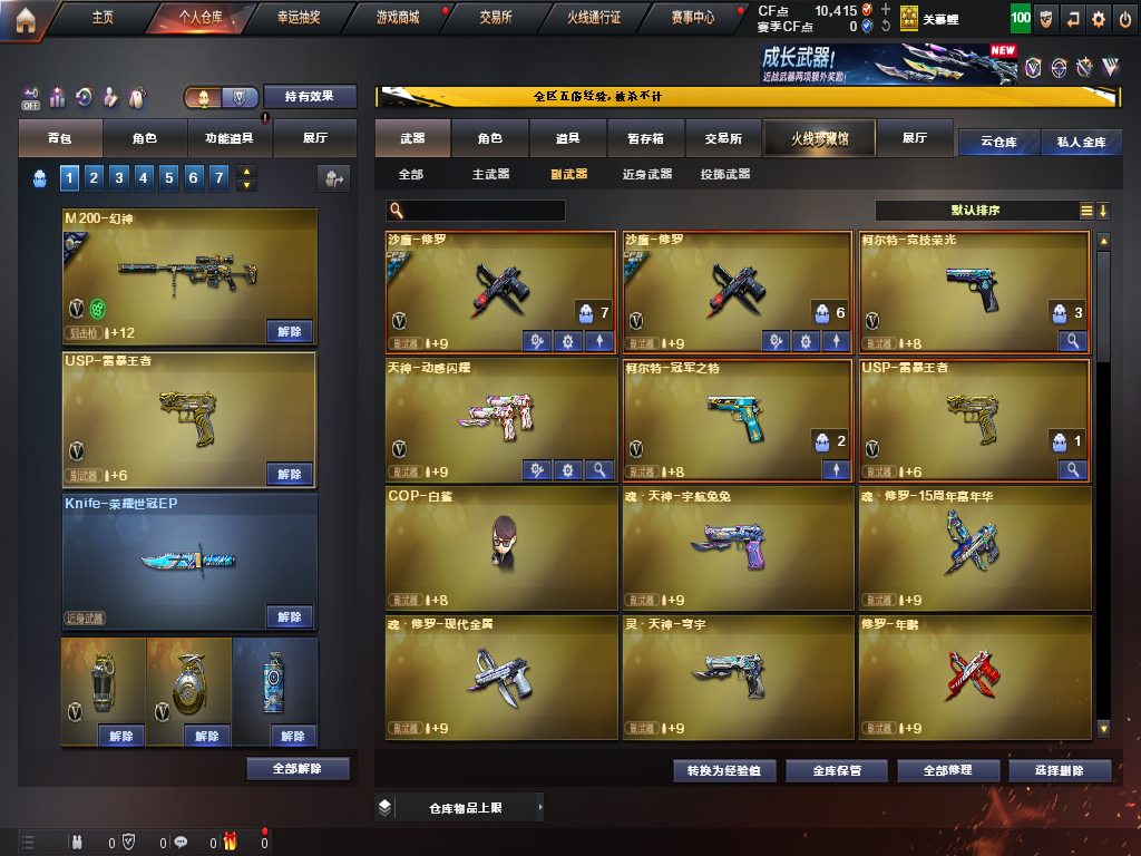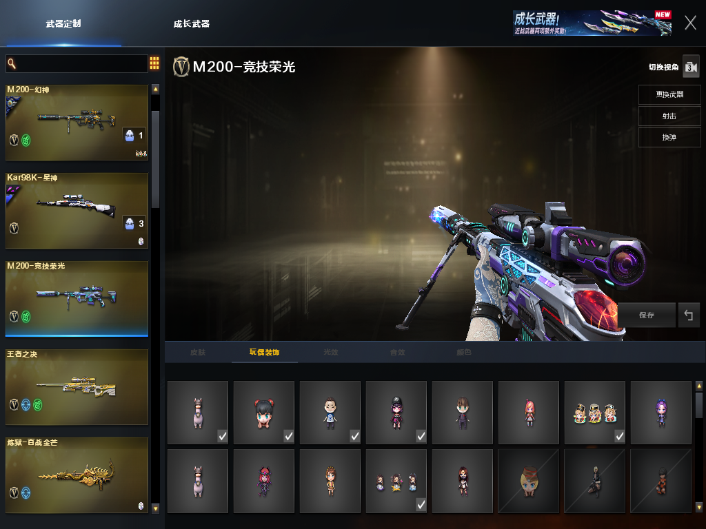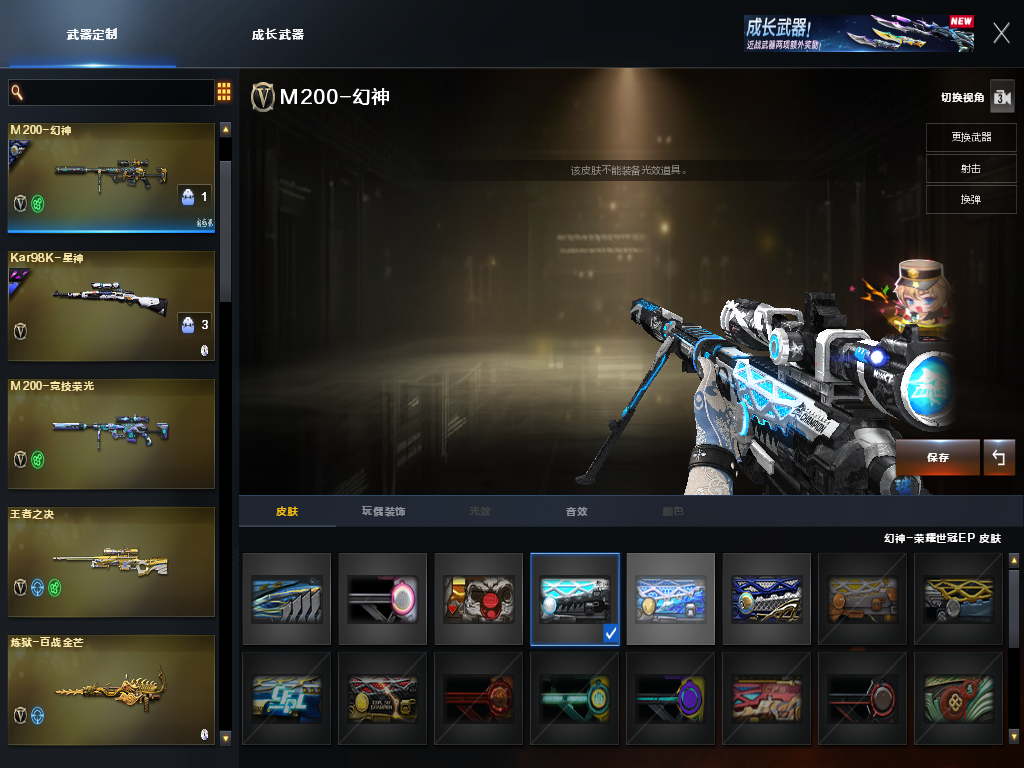 天袭,G36C幻影,幻神ep、kz、白鲨荣耀世冠、宠儿、n9,ep小刀,四防艾莉莎,星神三件套,裁决