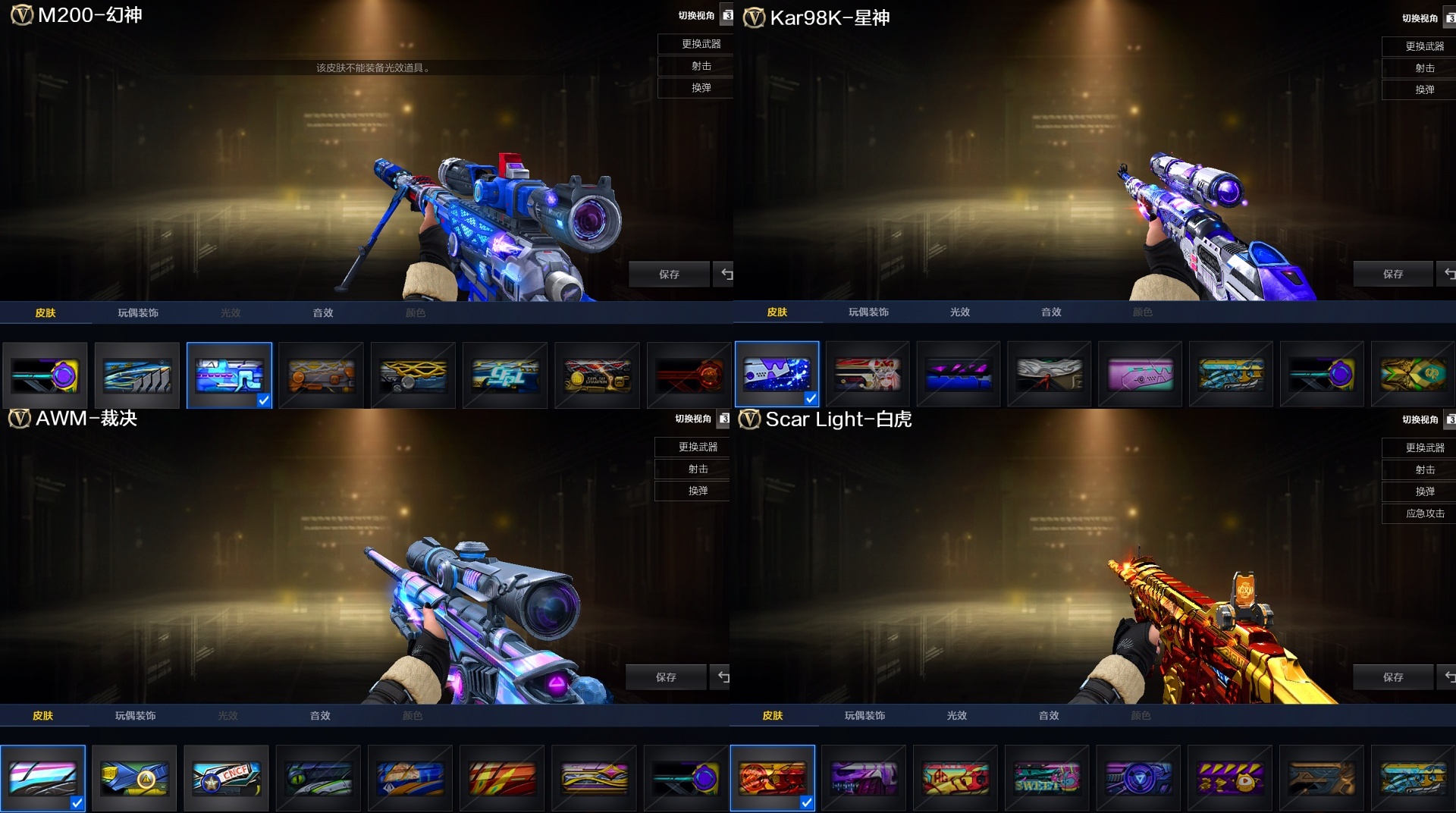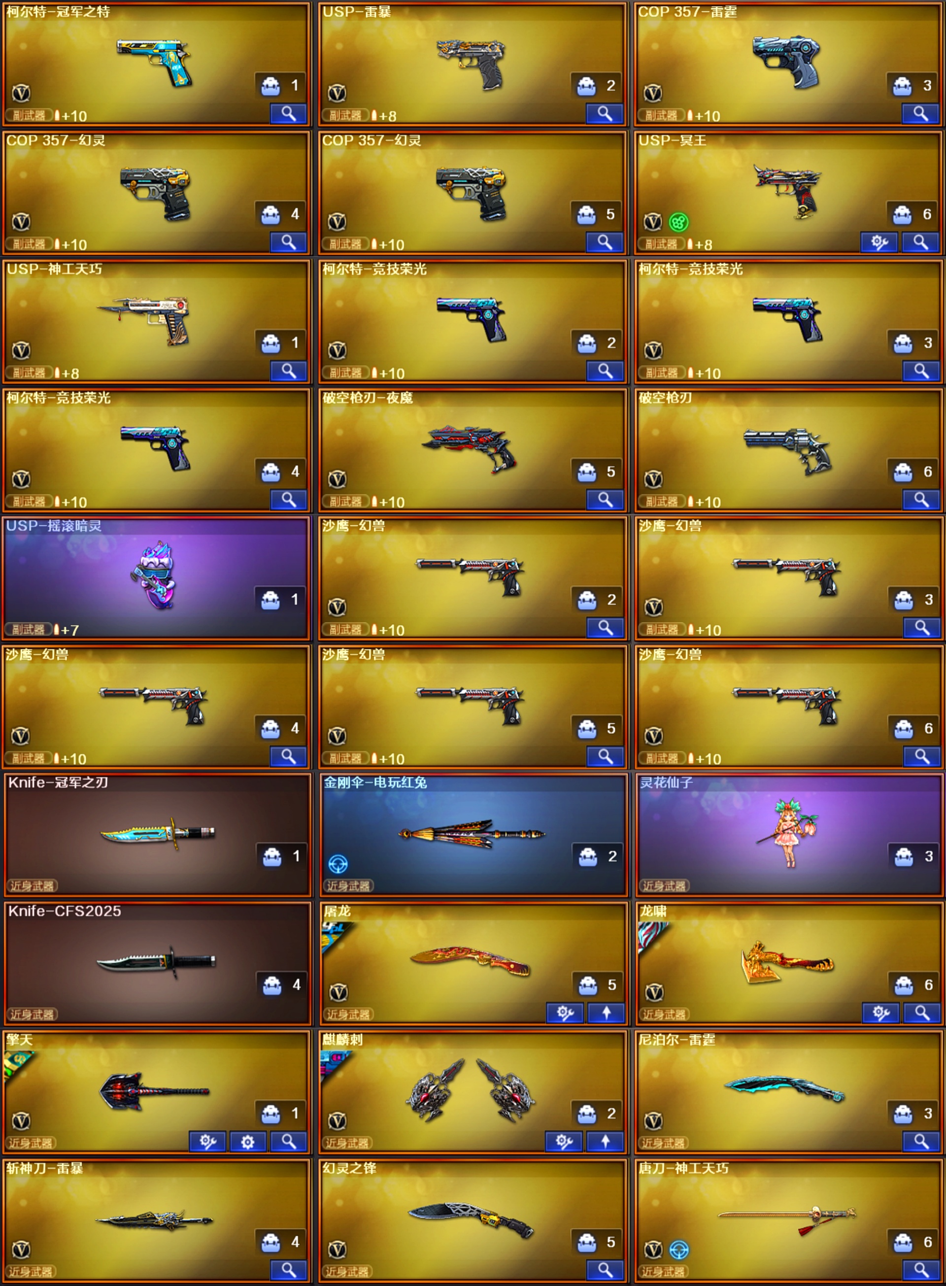 金名幻兽5套幻影♥幻神音效卡3皮电竞之星♥裁决音效卡3皮流光♥白虎大汉风骨♥4柯尔特3usp3cop