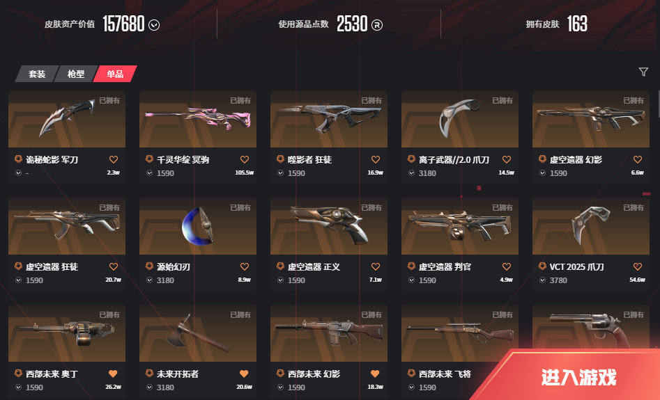 首页 > 租号大厅 > 无畏契约-wegame > wegame/wegame > 16w VCT爪刀 RGX 艾沃莉 离子套 莲花 盖亚 剥皮小刀 西部 日冕雄师 黯夜怪谈 流脓a
