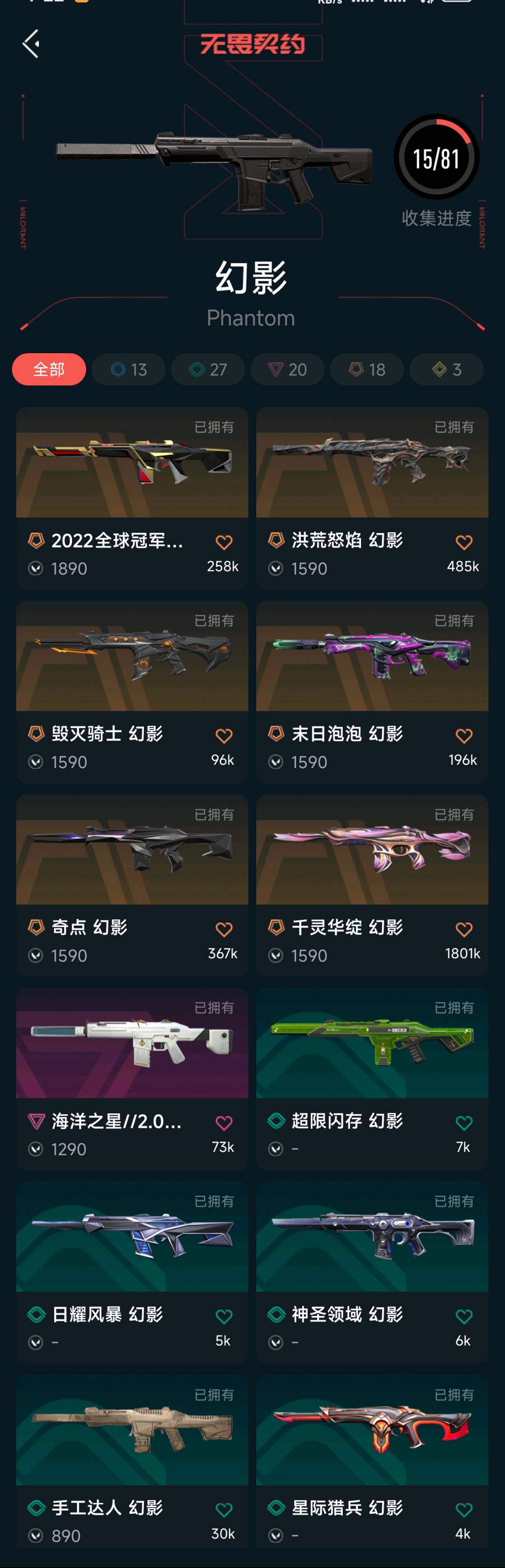 • 武器皮肤数量: 138