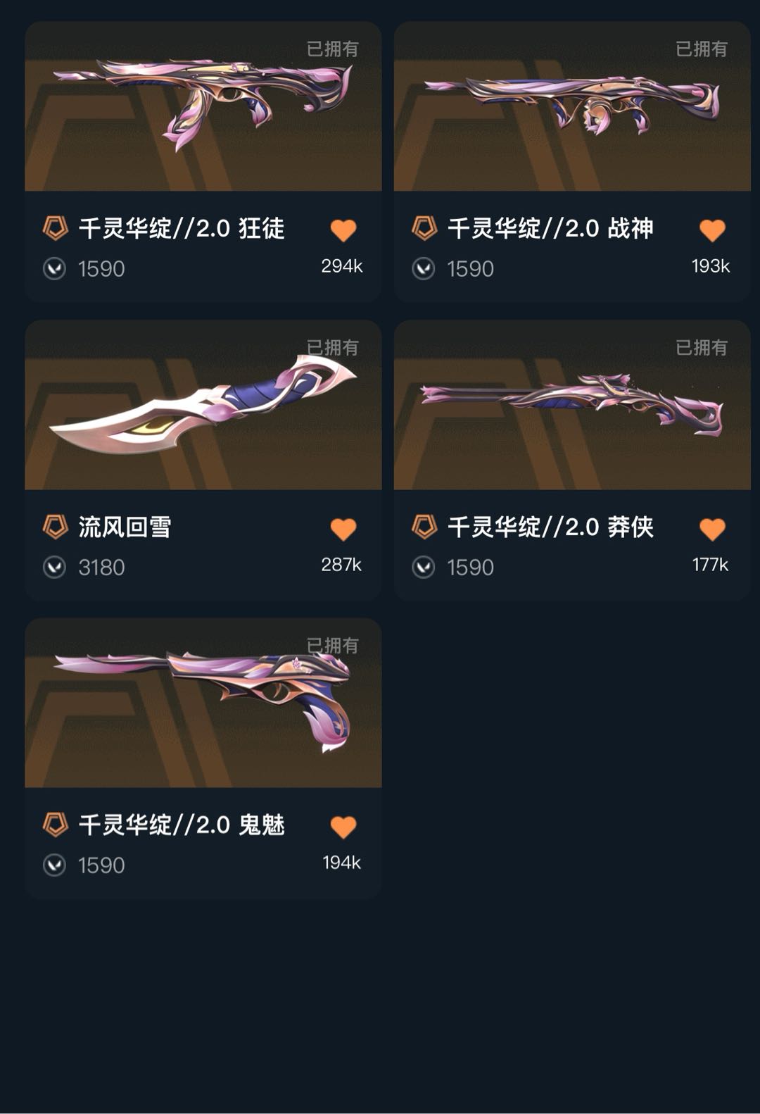精品小号⭐流风回雪刀⭐千灵华绽2.0套⭐幻心猎手狂徒⭐甜心猎手套⭐