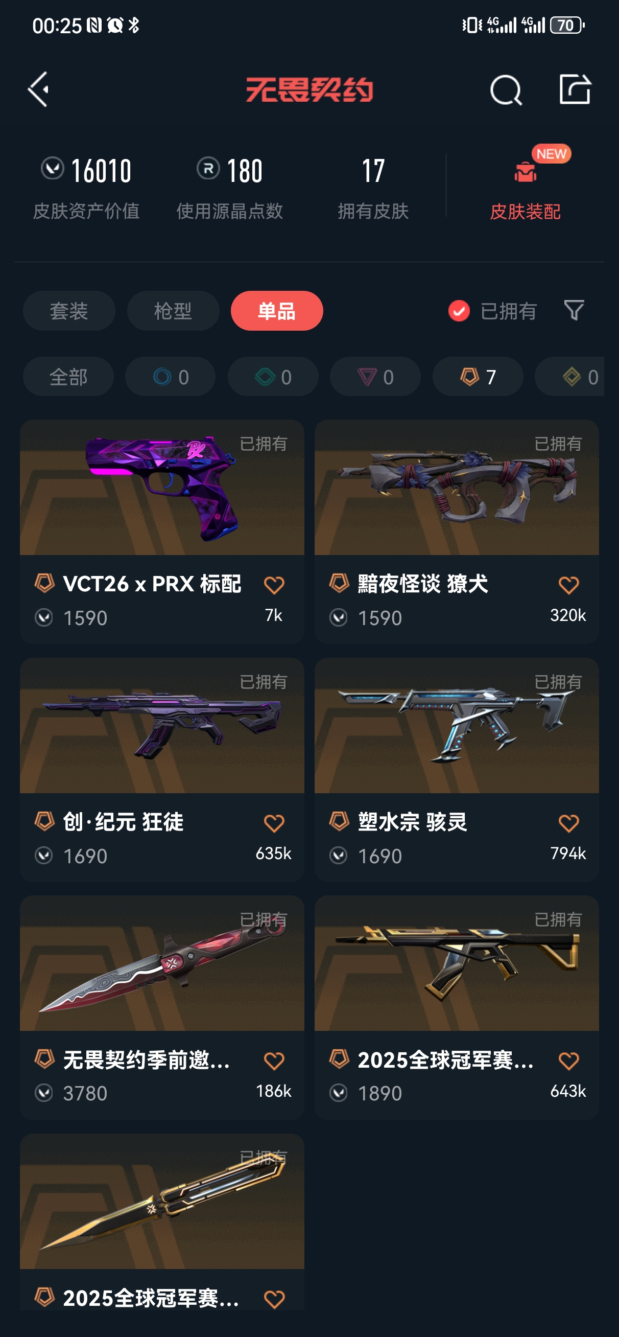 可排位❤❤25冠军套❤怜悯❤26PRX标配❤创纪元狂徒❤塑水宗骇灵❤黯夜獠犬❤藤原浩挂饰
