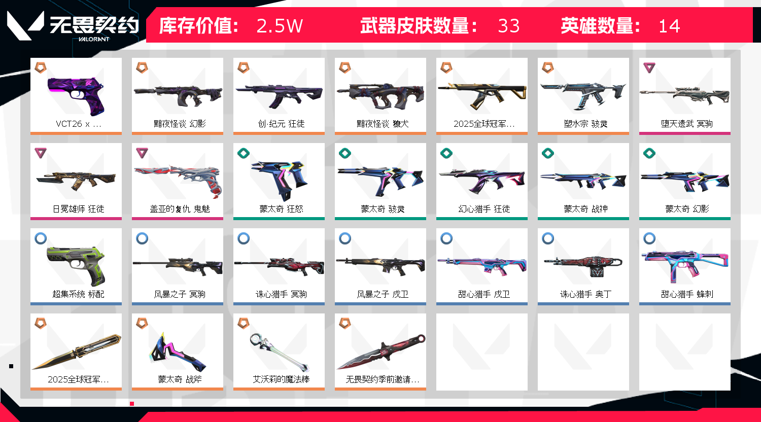 • 皮肤资产价值: 25050
