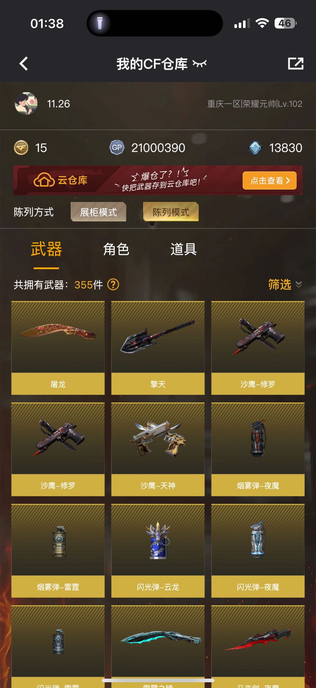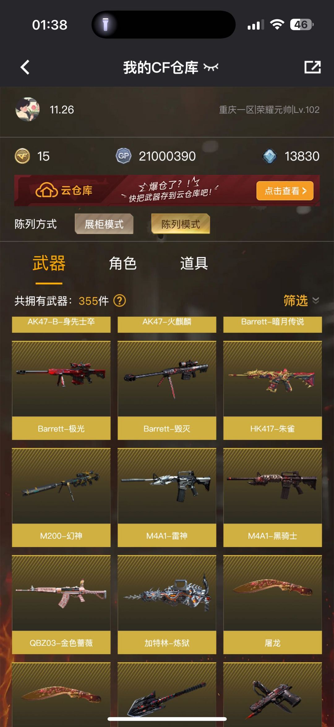 • 游戏区服:穿越火线 / 电信区 / 重庆一区