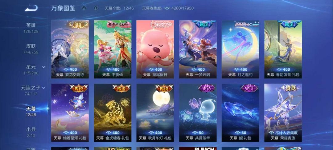 V10、543皮14水、吕布典藏-千魇归渊、愿照·九州拓、愿照·众生和、怪盗基德、伽罗星传说红枫、瑶典藏拾光映像、冥王哈迪斯、、龙年限定、齐天大圣