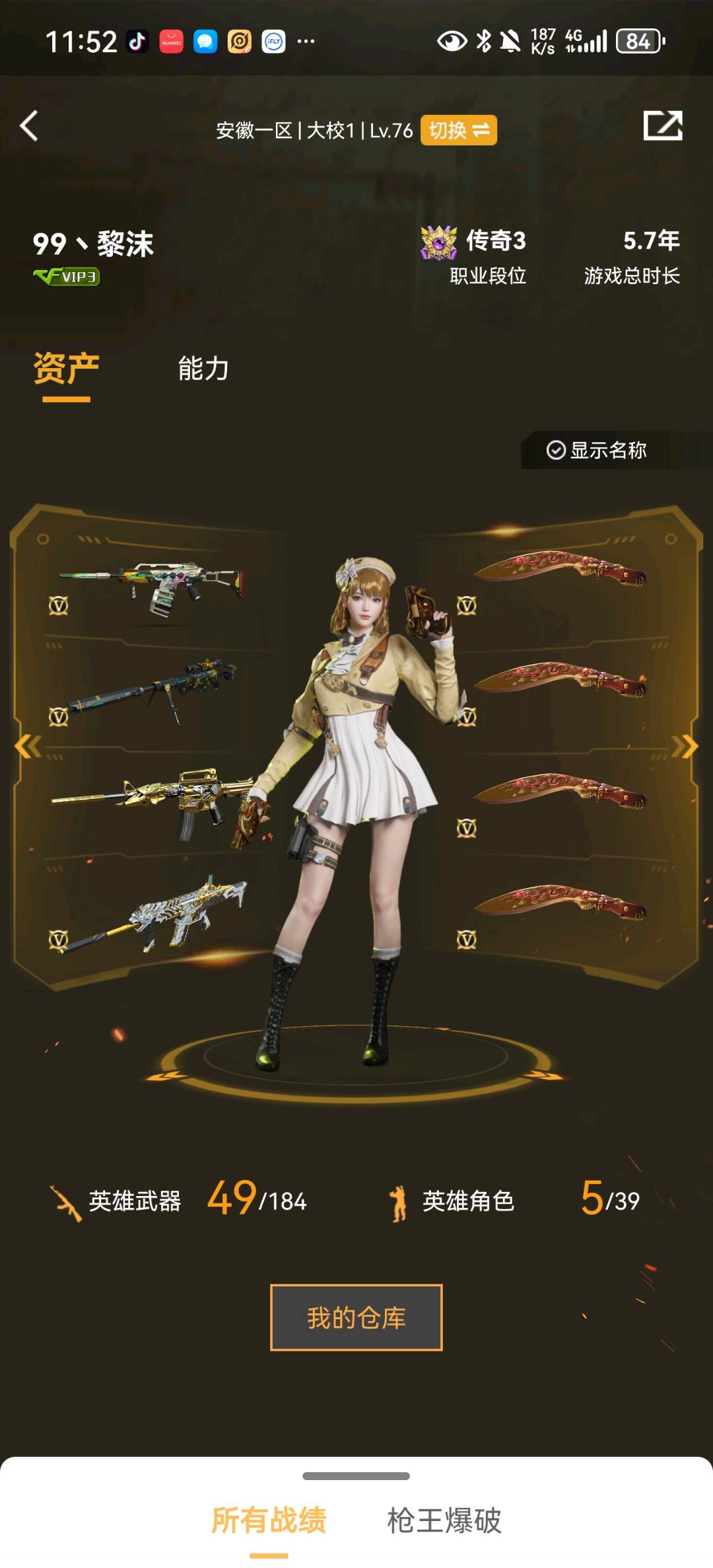 6烈 +G36幻影+幻神;电竞教官-云悠悠,QBZ03-金色蔷薇,G36C-幻影,M200-幻神,Scar Light-白虎,