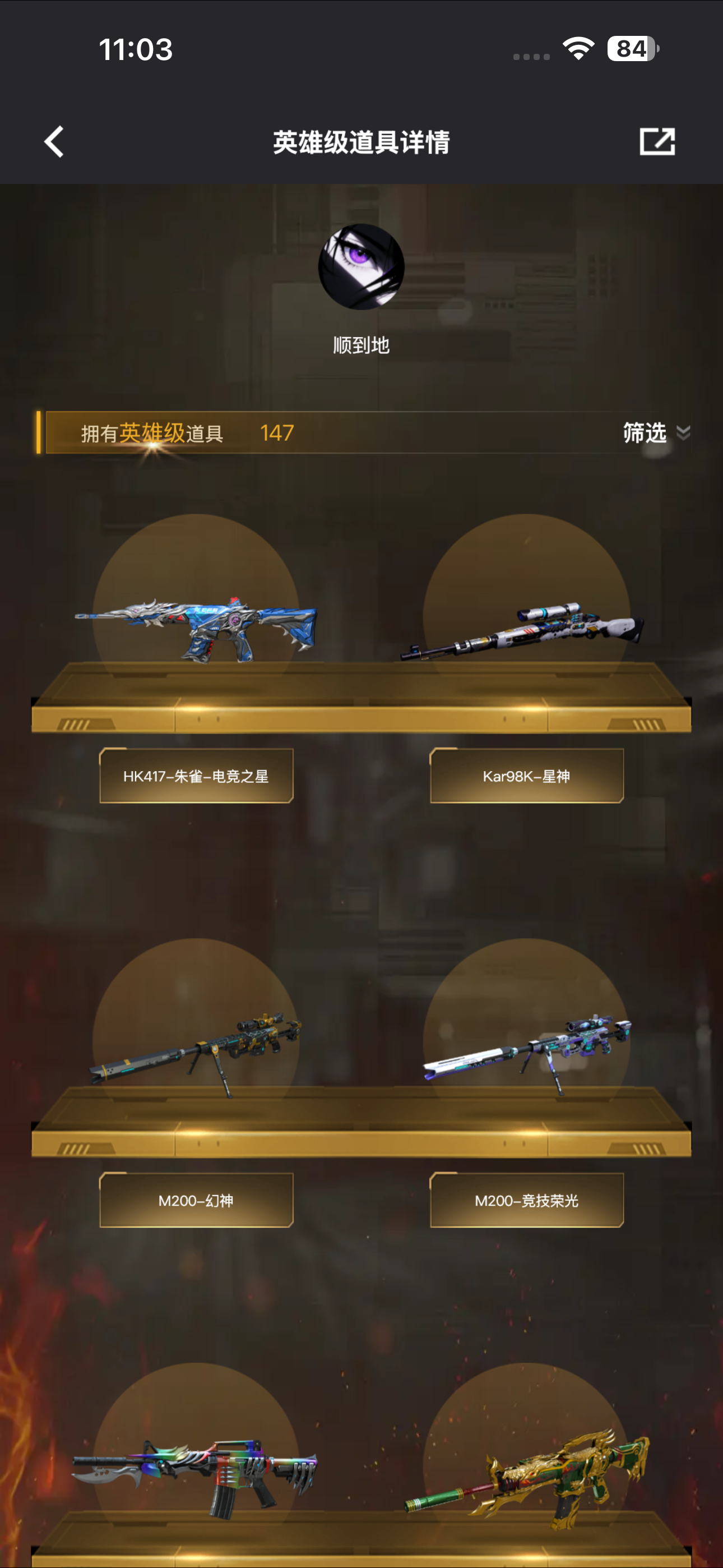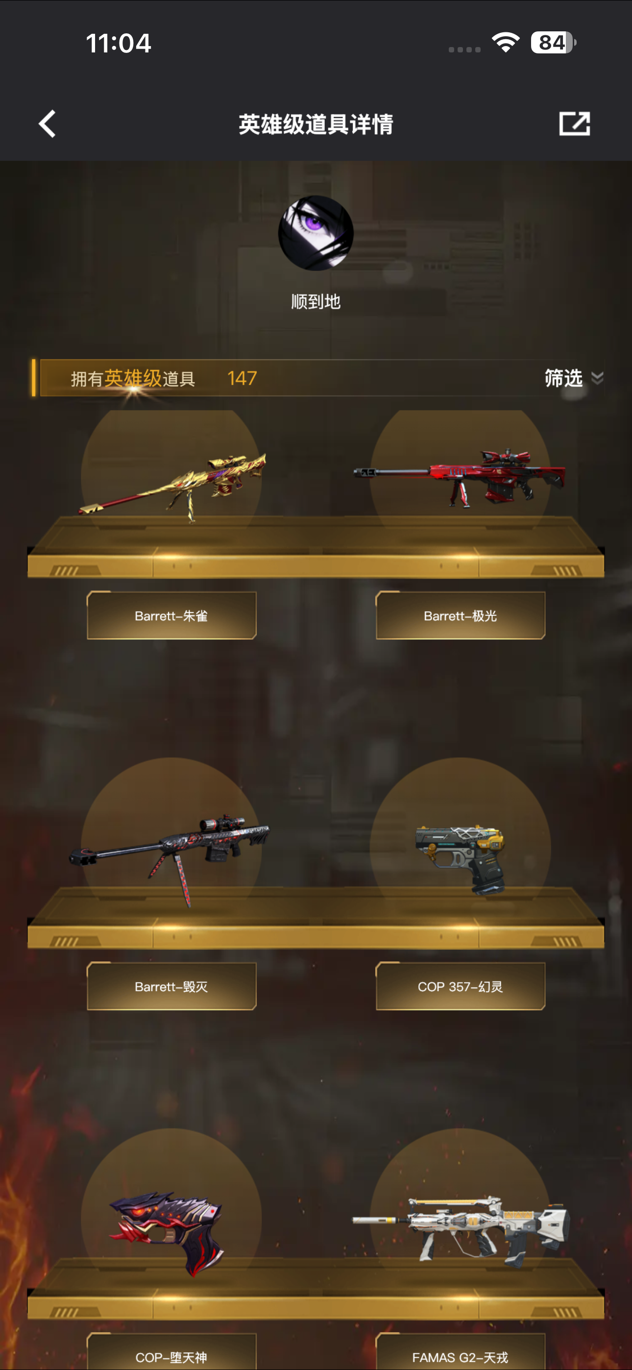 四防女帝;USP-雷暴,USP-雷暴王者,荣耀世冠-柯尔特,传说女帝,电竞教官-云悠悠,王者沙漠玫瑰,QBZ03-金色蔷薇,