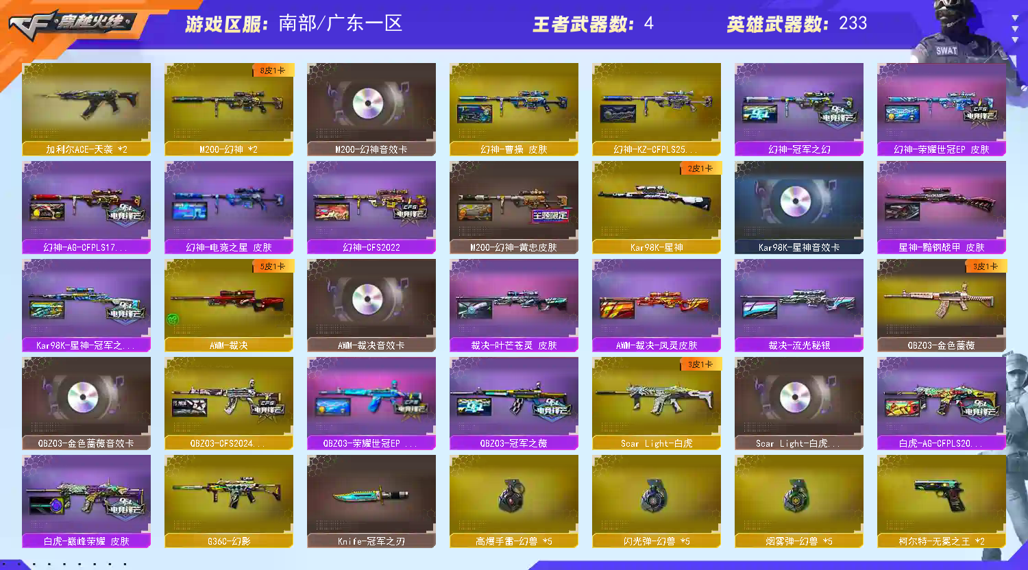 首页 > 租号大厅 > 穿越火线 > 电信区/广东一区 > 【南部】幻兽×5+幻神EP6皮+音⭐裁决套星神套usp雷暴×2冥王cop×4无冕×2白虎套