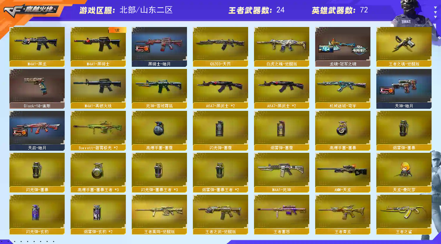 ★收藏好评! 由于异地登录保护机制,部分客户在使用客户端自动上号时会出现密码错误,注意本号密码不会错误,请多尝试5-6次!本账号已经过虚拟财产认定,请各位科技大神高抬贵手。请素质租号,文明游戏,谢谢大家配合!!;USP-雷暴王者,柯尔特-荣耀世冠白鲨2023,柯尔特-冠军之特,炽芒蝶刃,隼,RPK-盘龙,QBZ03-金色蔷薇,