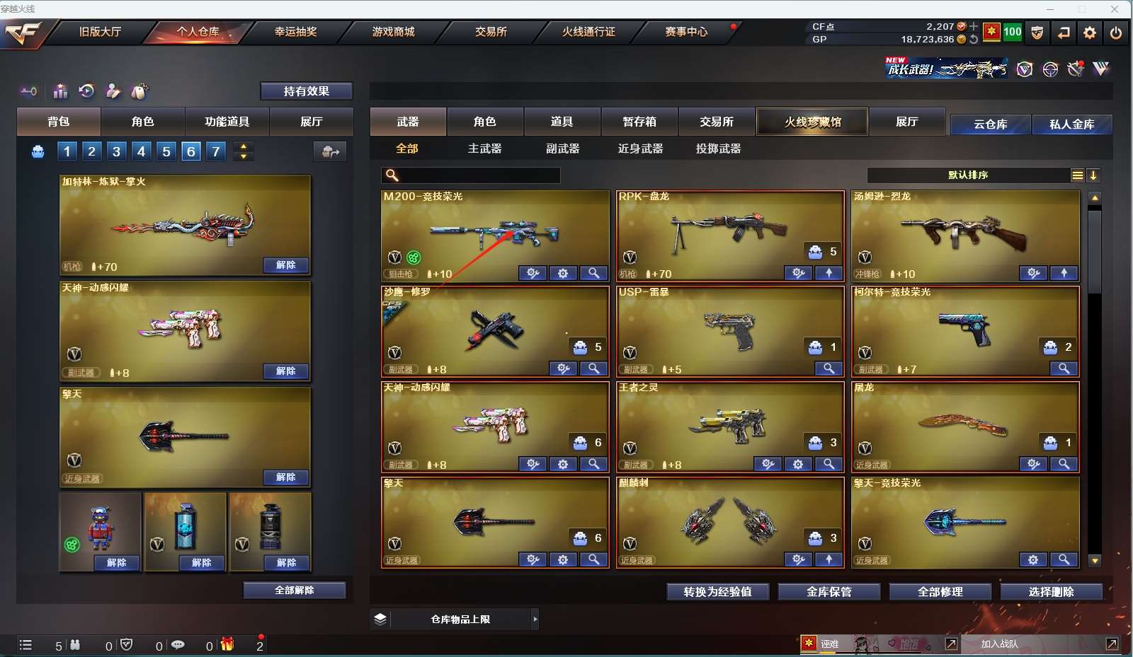 【四防传说艾莉莎】 【m200幻神+冠军之幻】 【竞技荣光套+四防云悠悠+usp雷暴】 【98k星神】 【qbz金色蔷薇】 【炽芒蝶刃】 【小人呛 裁决雪莉杨 迷你小钢】 【火麒麟+传奇even】 【雷神+音效卡+lgd18冠军+白鲨14冠军】 【黑骑士+音效卡】 【毁灭】 【盘龙 烈龙】 【王者之势 王者霜心 王者之灵】 【无影神兵利器 烈火动感闪耀 战神】 【修罗 屠龙 擎天 麒麟刺】 【角色 零 乔伊教练 晴雅】 【xrock炫彩背包 动感闪耀炫彩背包;USP-雷暴,炽芒蝶刃,电竞教官-云悠悠,晴雅,传说艾莉莎,RPK-盘龙,QBZ03-金色蔷薇,