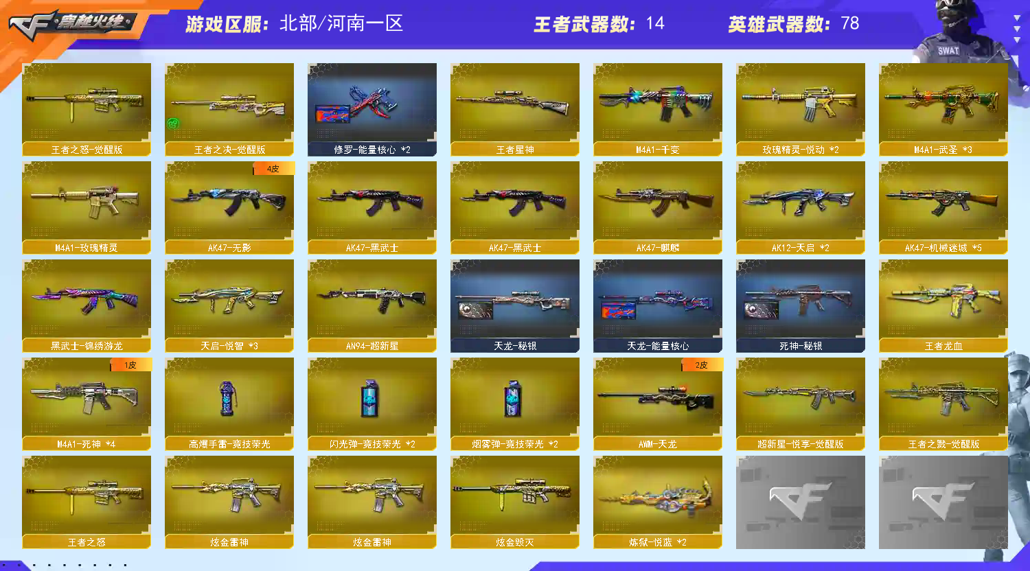 玩的开心;RPK-盘龙,M200-幻神,Scar Light-白虎,