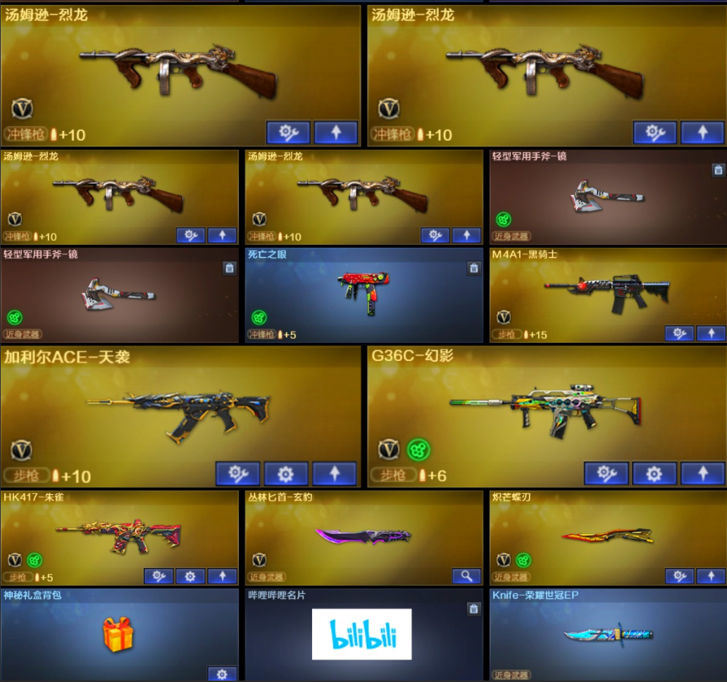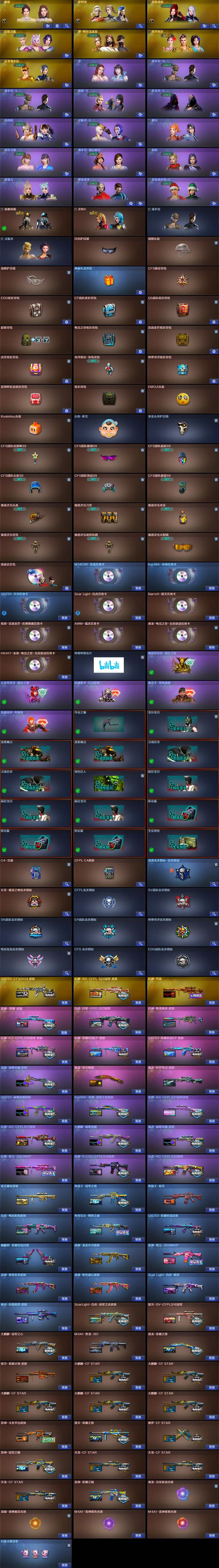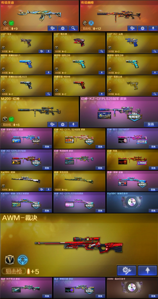 宋雨琦/幽瞳/雷霆/加利尔/EP套/9副手/幻神7皮/裁决3皮/白虎5皮/星神3皮/音效9/G36C
