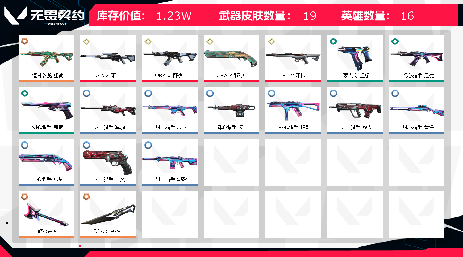 首页 > 租号大厅 > 无畏契约-wegame > wegame/wegame > 可排位 英雄13 武器皮肤数量17
