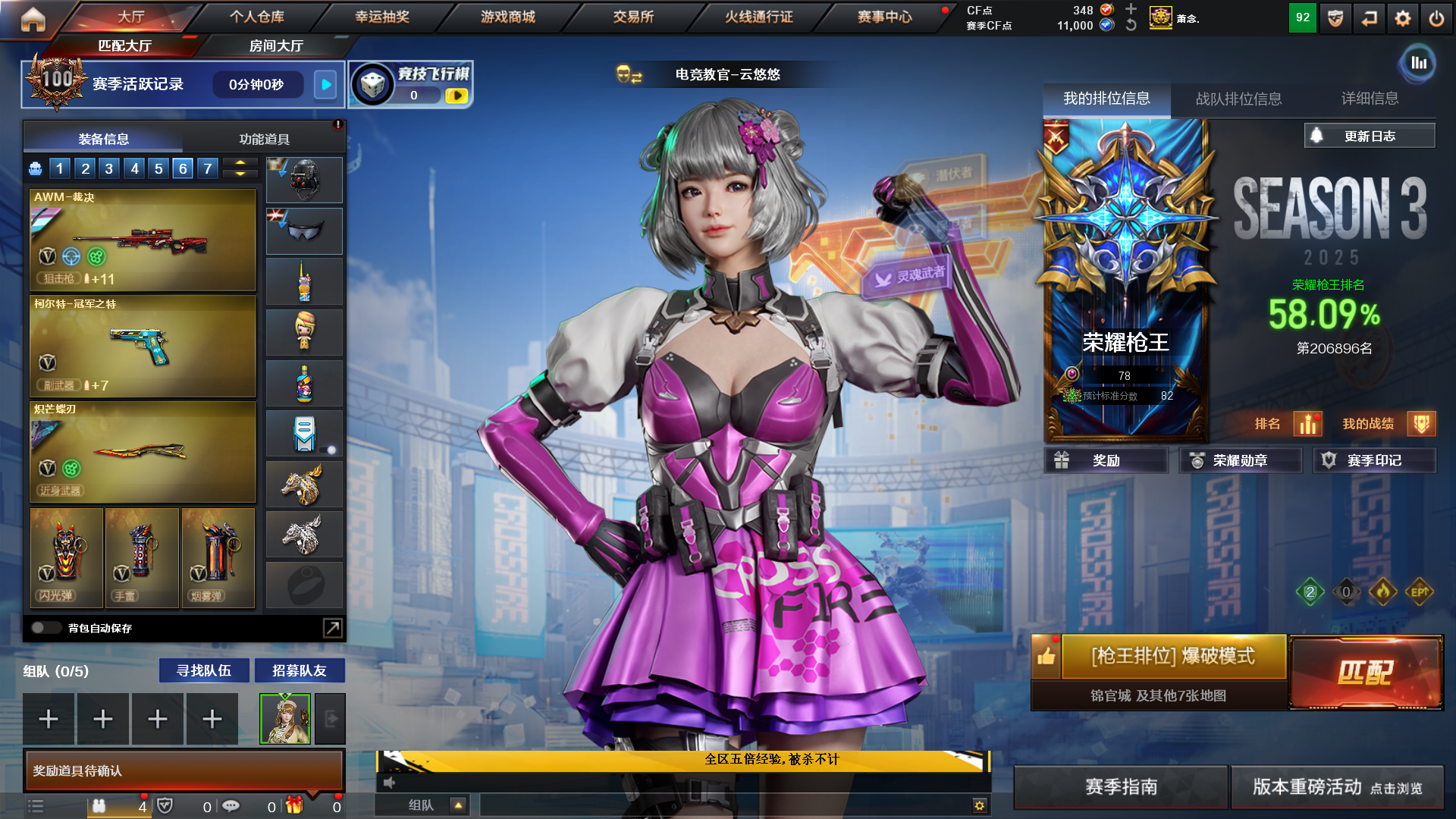 禁止开挂!!!中途退出游戏永久拉黑并投诉!!!;USP-雷暴,柯尔特-冠军之特,炽芒蝶刃,电竞教官-云悠悠,RPK-盘龙,QBZ03-金色蔷薇,M200-幻神,