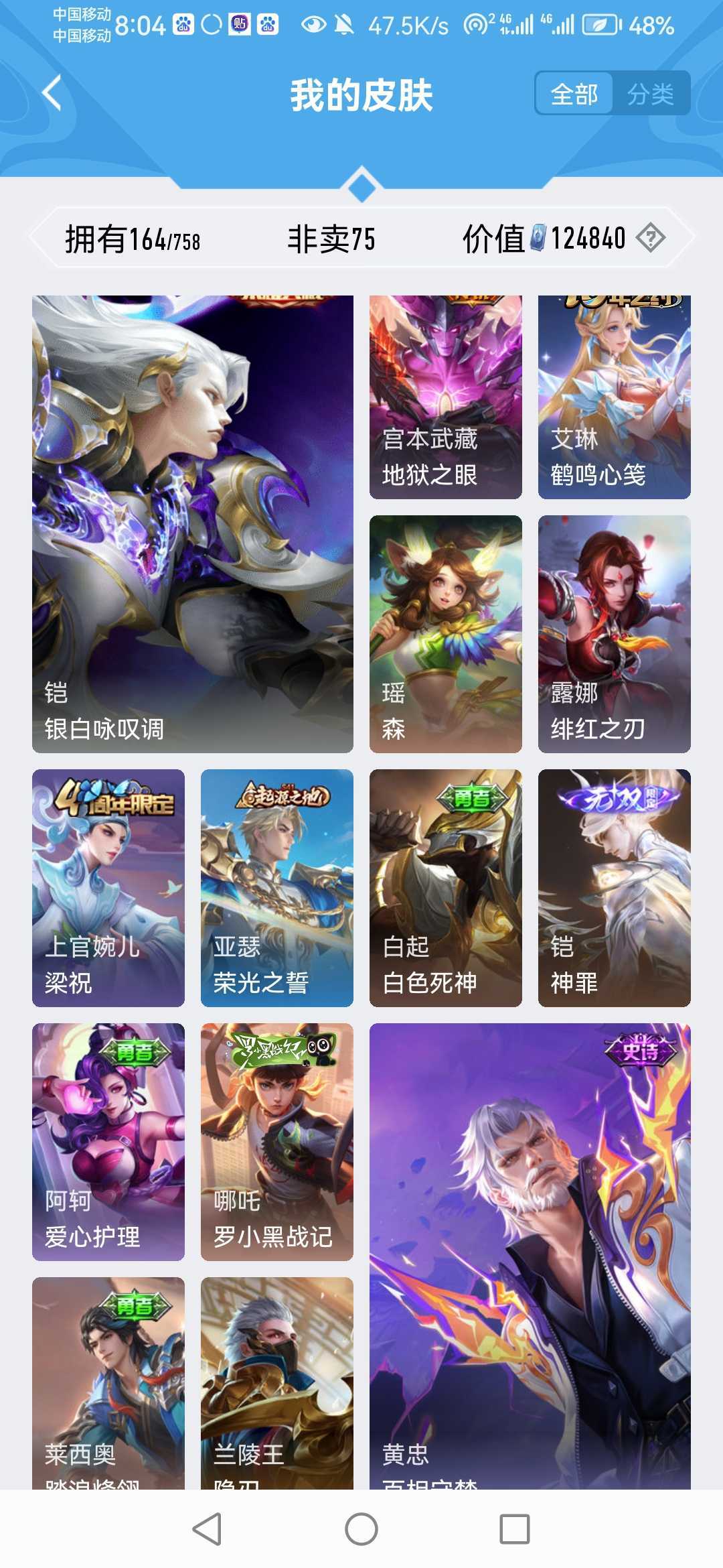 V11✨753皮肤✨千魇归渊✨无相✨神罪✨山海经天机白泽✨全套死神联动✨全套穆夏✨馥梦繁花✨美神临世✨库洛米✨大耳狗✨全荣耀水晶✨螭龙剑✨全无双