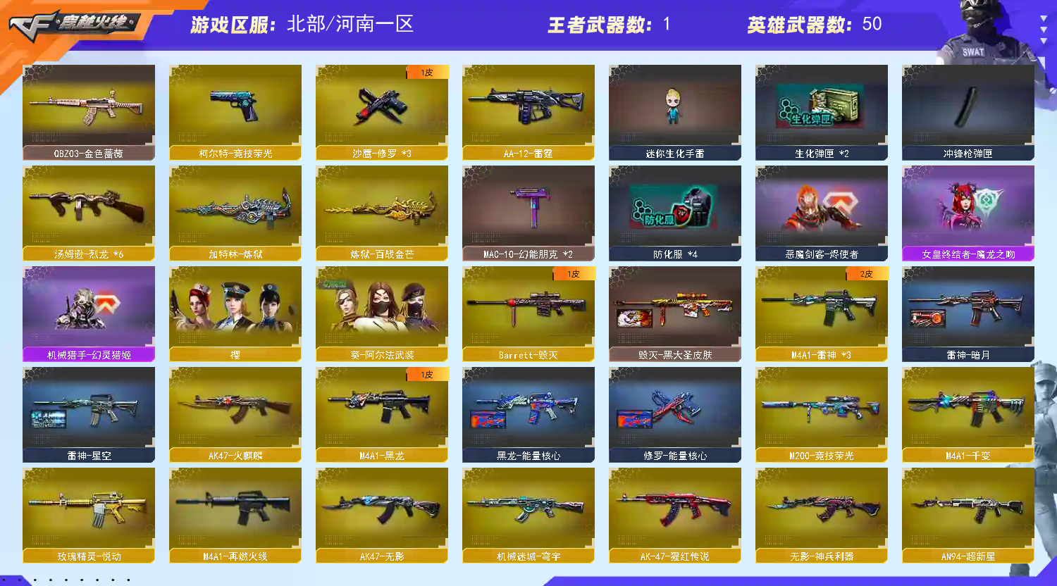 【允许排位】39v/m200-竞技荣光/雷神/黑龙/火麒麟/qbz蔷薇/屠龙/擎天/龙啸/修罗/等;QBZ03-金色蔷薇,