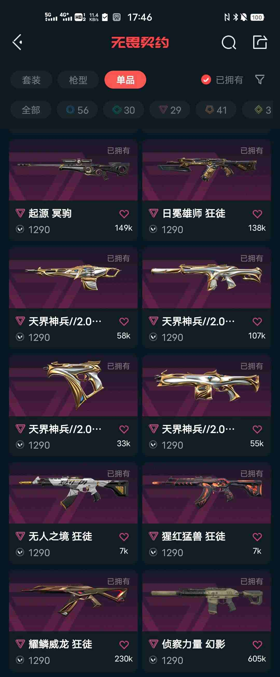 落英飞旋,显卡爪刀,紫金标配,边陲、奇点正义,破败戍卫,混沌、堕天遗武、雄狮狂徒,侦查,归零者冥狙