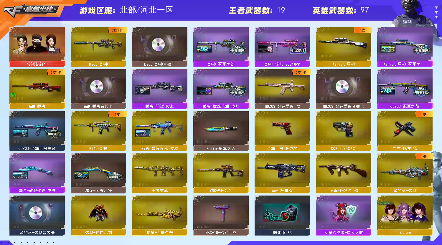 首页 > 租号大厅 > 穿越火线 > 网通区/河北一区 > 艾丽莎高质量爆破号 幻神冠军之幻带卡|幻神三件套|Qbz三件套|裁决三件套|星神|G36C等
