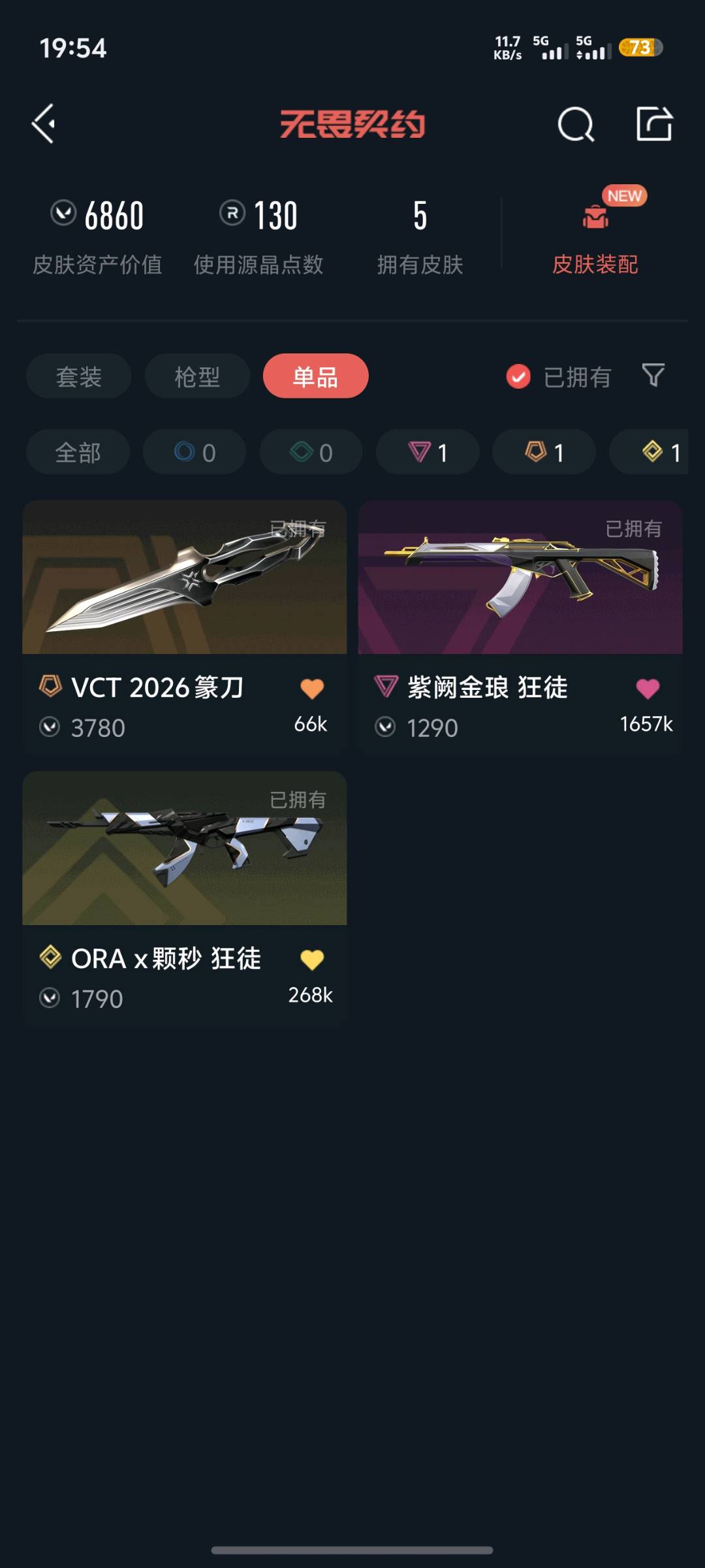 • 皮肤资产价值: 6860