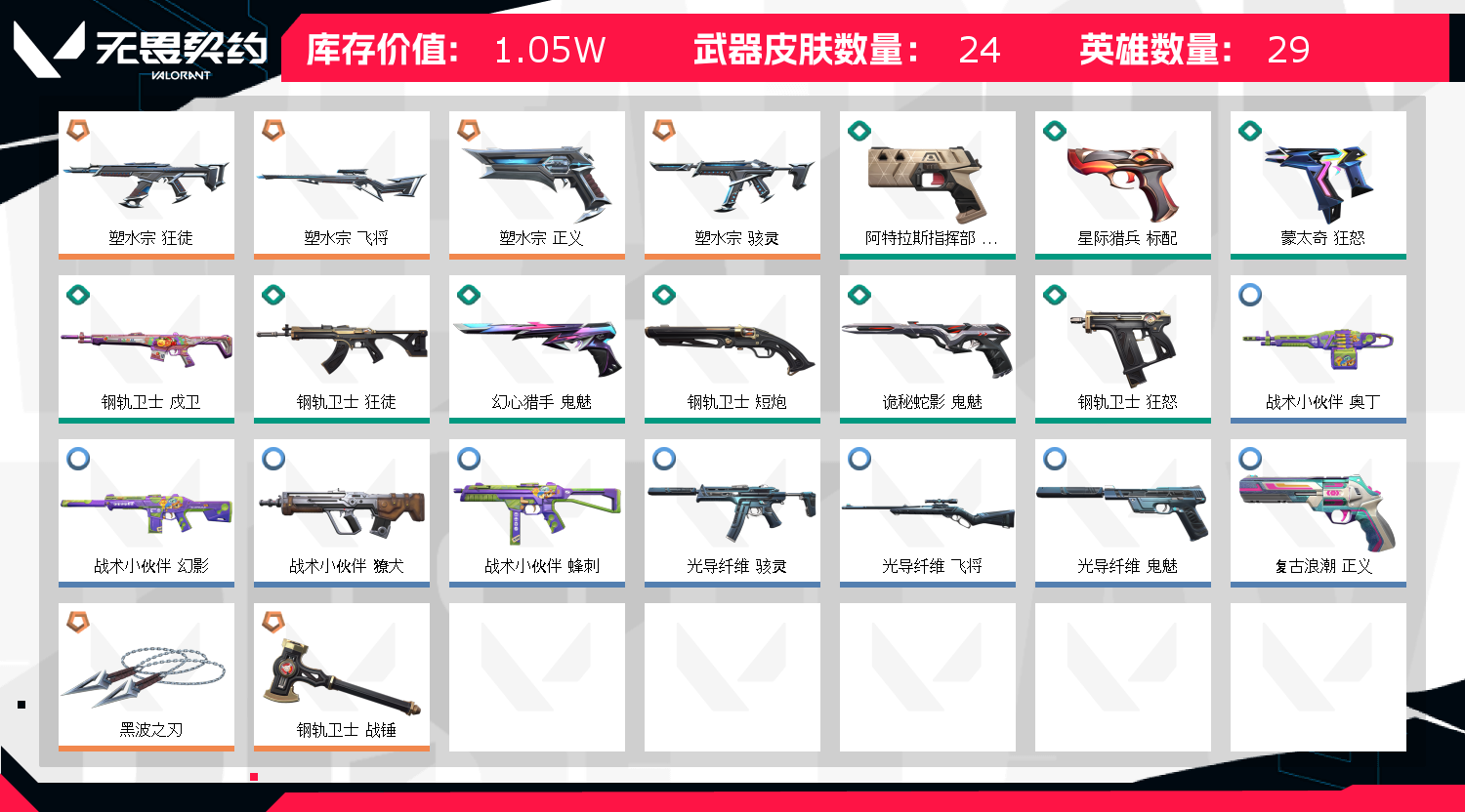 首页 > 租号大厅 > 无畏契约-wegame > wegame/wegame > 塑水宗骇灵♥黑波之刃♥钢轨卫士戍卫♥塑水宗狂徒♥塑水宗正义♥战术小伙伴奥丁
