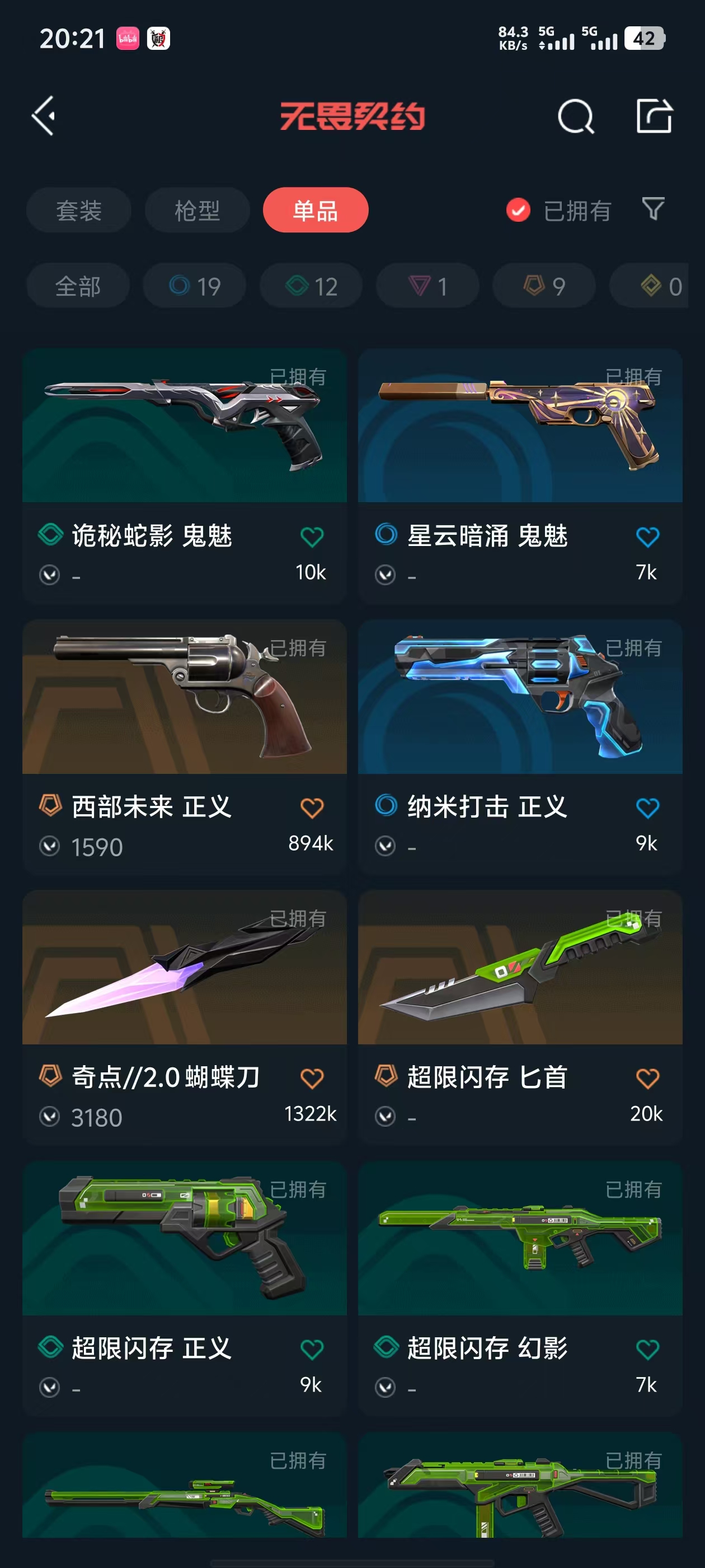 可排位 英雄28 武器皮肤数量41;威龙之刃,洪荒怒焰 幻影,堕天遗武 狂徒,混沌序曲 狂徒,塑水宗 狂徒,西部未来 正义,