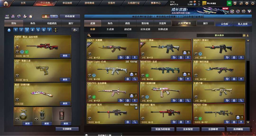 M200-幻神⭐USP雷暴王者⭐COP云龙⭐极光音效卡⭐M14EBR玄武⭐裁决⭐荒漠琉璃等等