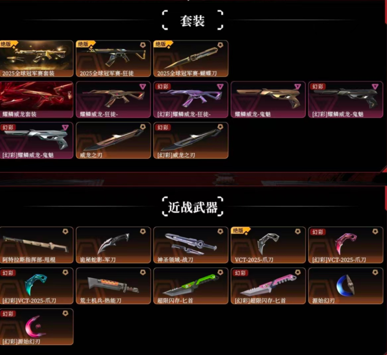 首页 > 租号大厅 > 无畏契约-wegame > wegame/wegame > 2025冠军威龙套✨混沌序曲盖亚的复仇紫金创纪元梦之翼掠影狂徒✨洪荒侦察幻影西部未来奇点正义✨军刀