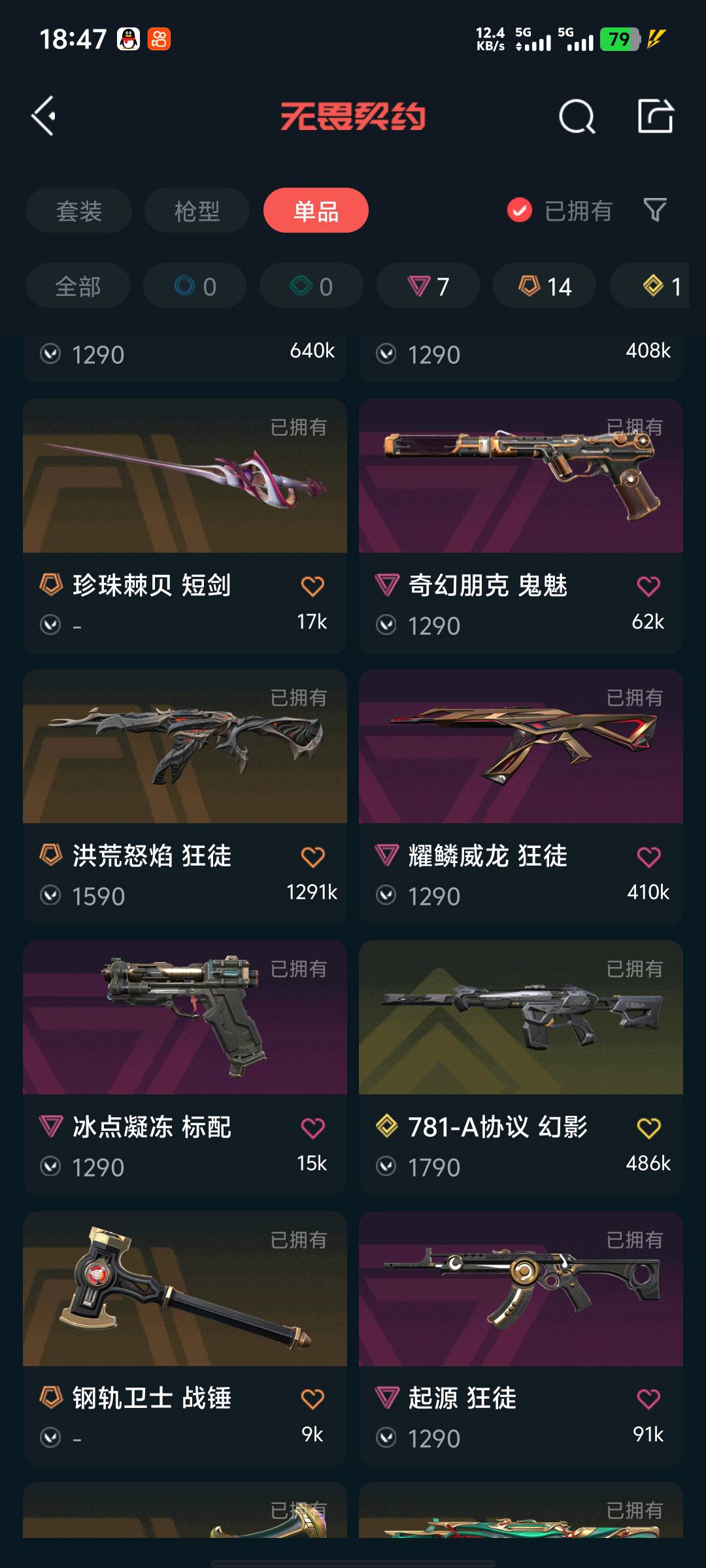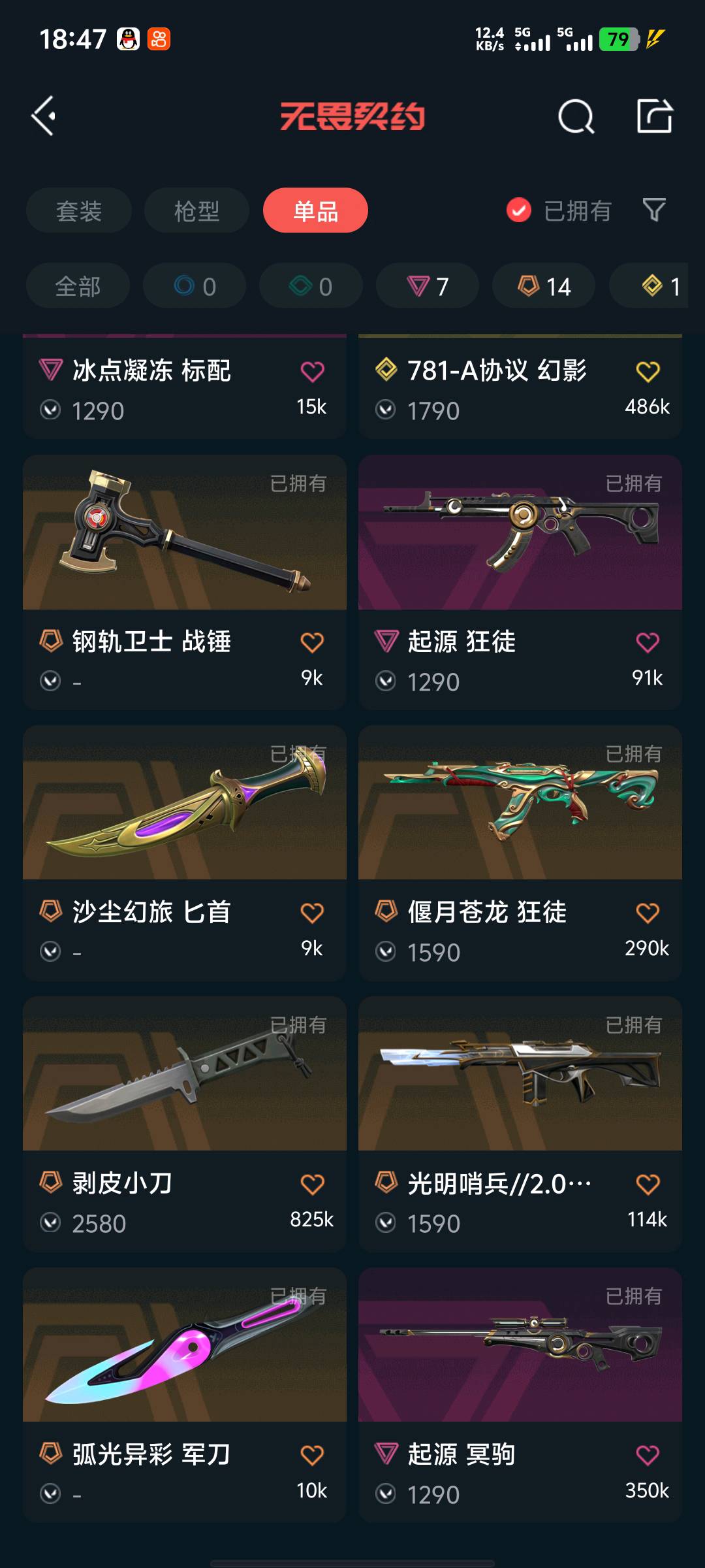 玩的开心;剥皮小刀,洪荒怒焰 狂徒,堕天遗武 狂徒,起源 冥驹,千灵华绽 正义,