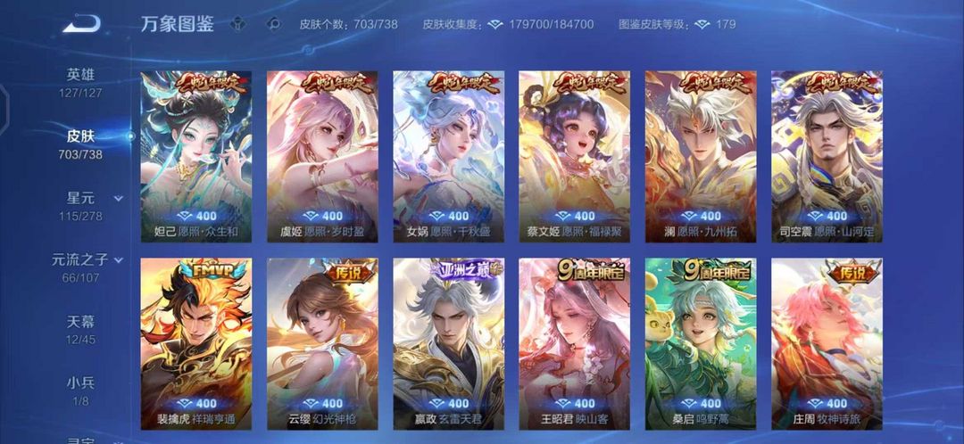 v10、524皮5水4无双、遇见神鼓、齐天大圣、白虎志、韩信荣耀典藏、72传说、愿照·九州拓、时之魔女、瑶无双、青丘、九尾、神器明辉仪