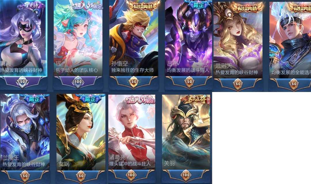 V10、550皮14水、吕布典藏-千魇归渊、云缨-神骥·越千峰、怪盗基德、伽罗星传说红枫、瑶典藏拾光映像、冥王哈迪斯、、龙年限定、齐天大圣