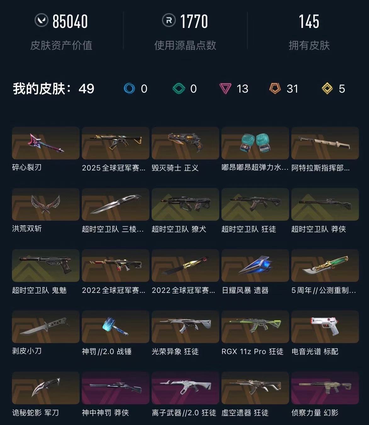 • 武器皮肤数量: 145