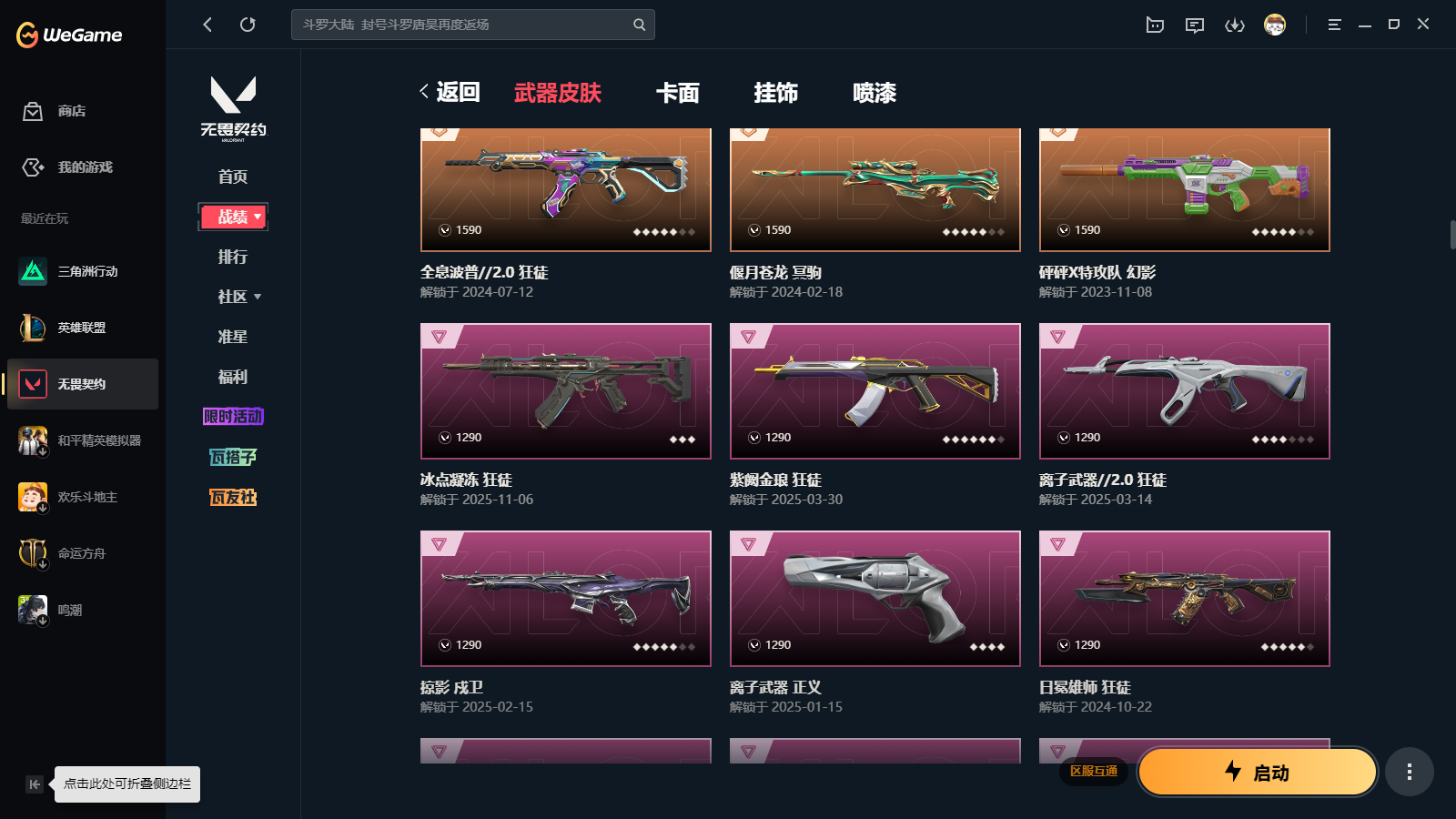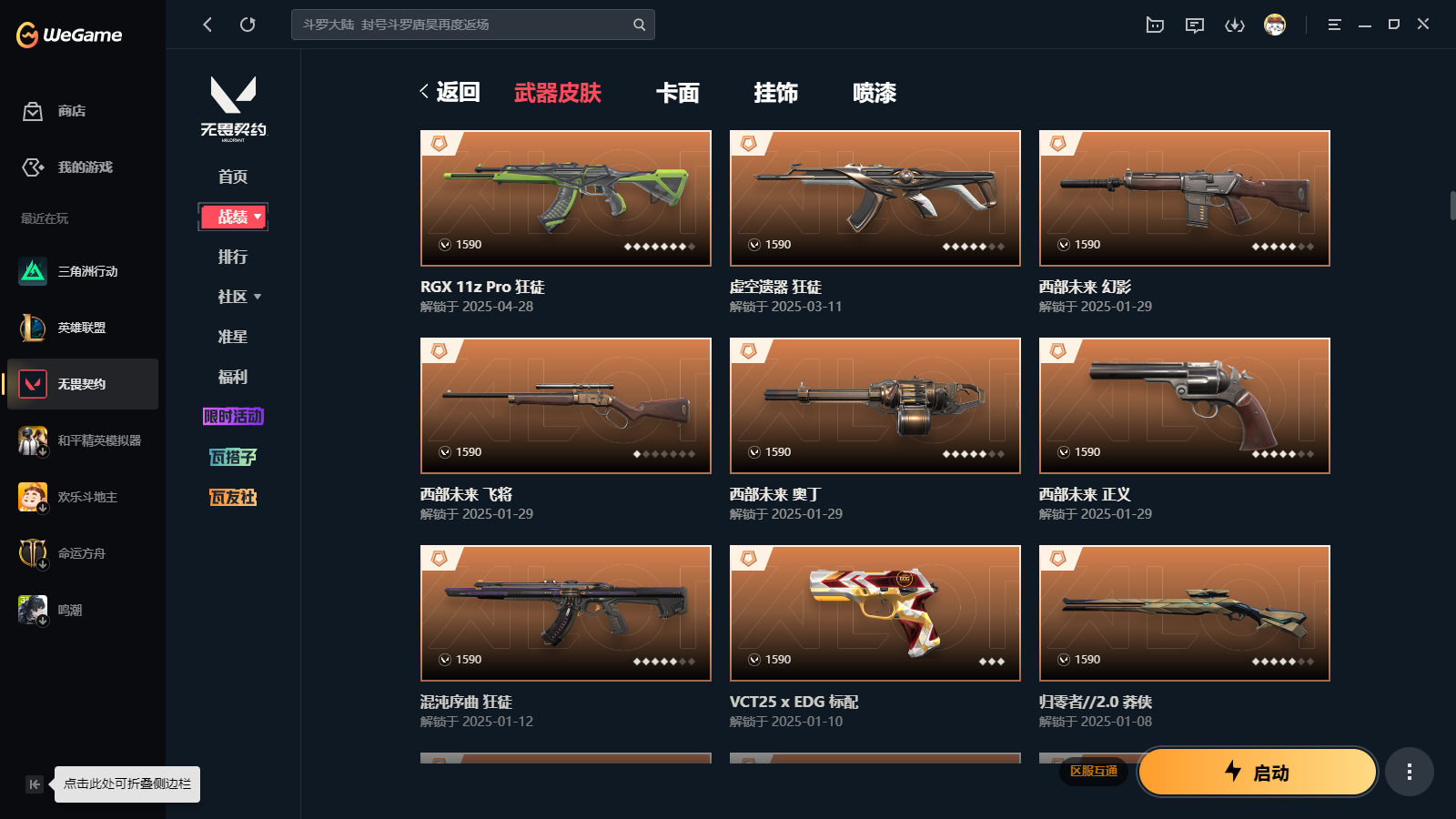 • 游戏区服:无畏契约-wegame / wegame / wegame