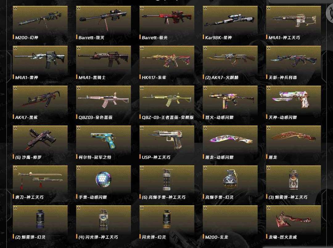 幻神动感闪耀 /幻神黄忠/幻神世冠白鲨/幻神冠军之幻/毁灭英雄计划 /毁灭冠军之怒/毁灭战神张飞/毁灭枪娘/毁灭耀金/毁灭墨兰/关小雨/兰-巾帼英雄/M200-幻神/Barrett-毁灭/Barrett-极光/Kar98K-星神/M4A1-神工天巧/M200-幻神音效卡/Barrett-毁灭音效卡/禁止利用账号进行开挂、使用辅助违规软件诈骗等违规操作。