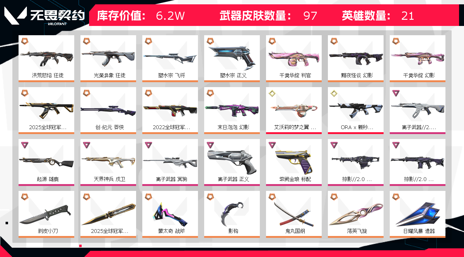 无畏契约国服/黄金/鬼丸国纲/22冠军/25冠军/剥皮小刀/流脓ak/莲花苦无/猫猫奥丁/塑水正义