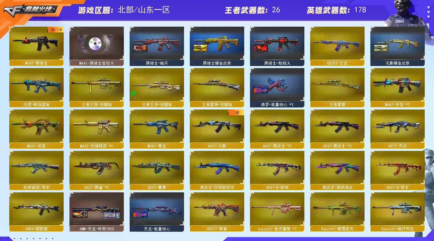 首页 > 租号大厅 > 穿越火线 > 网通区/山东一区 > 炽芒碟刃x4、爆破生化双全装、传说辉光、M200幻神、98K星神、AWM裁决、白虎