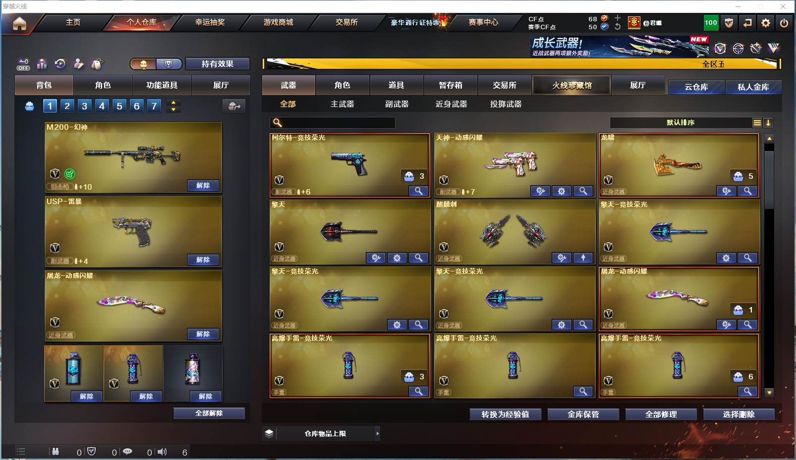 幻神-竞技荣光-王者星神-qbz金色蔷薇-王者白虎-白虎电玩蓝兔-毁灭-裁决-usp雷暴-柯尔特竞技