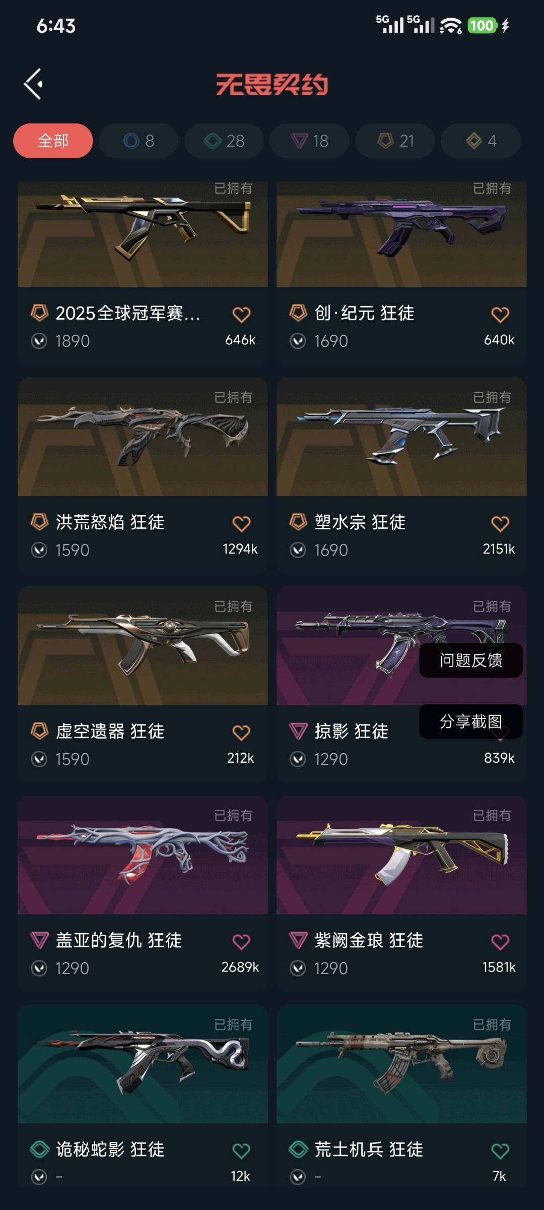 Q区/73皮/未定级/盖亚狂徒 25冠军狂徒 侦查幻影 流脓狂徒 虚空狂徒 紫金狂徒