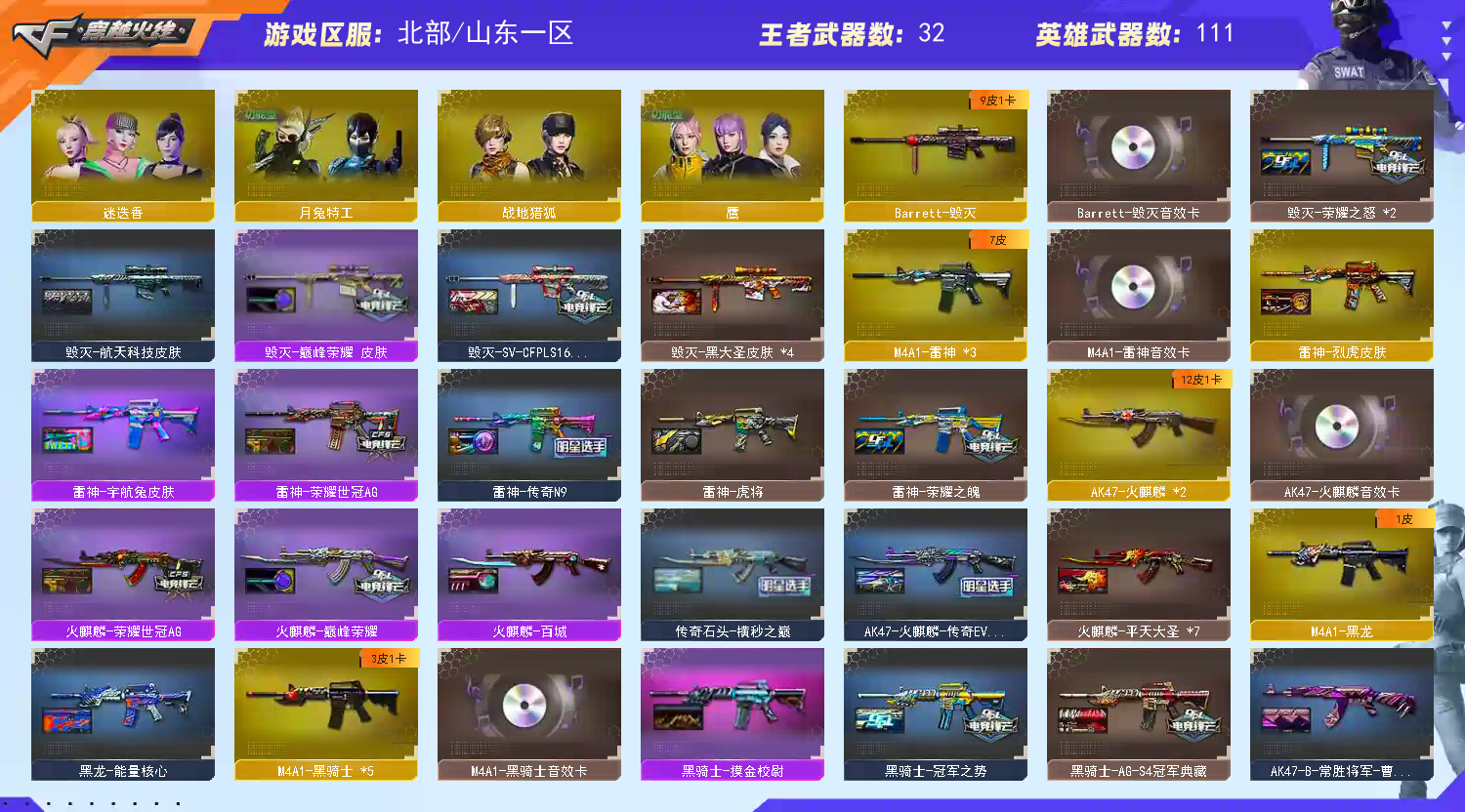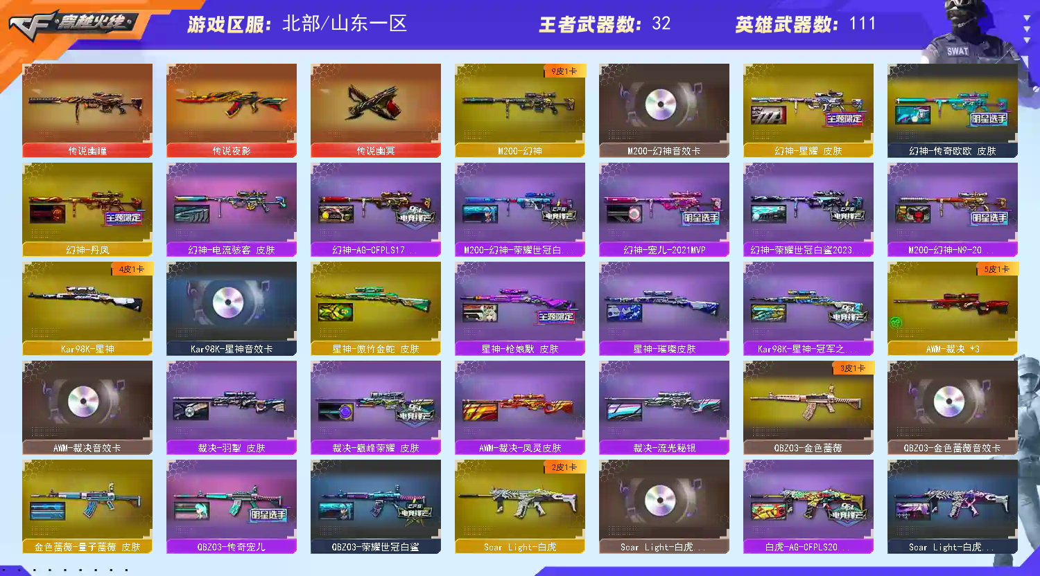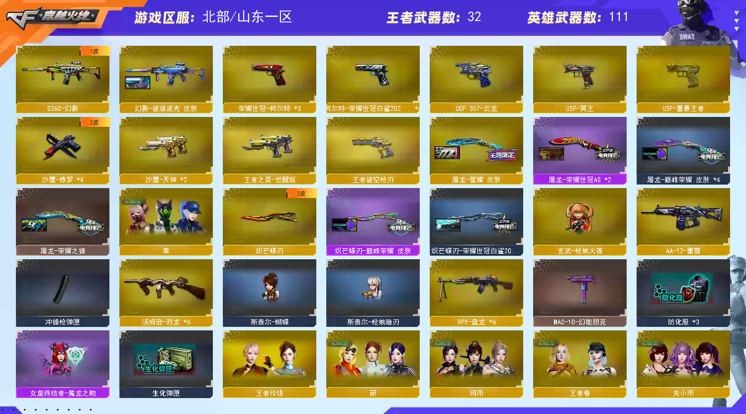 首页 > 租号大厅 > 穿越火线 > 网通区/山东一区 > 传说幽瞳⚡幻神9皮带卡⚡星神4皮带卡⚡裁决4皮带卡⚡qbz3皮带卡⚡白虎三件套⚡8个质量副手幻影带皮