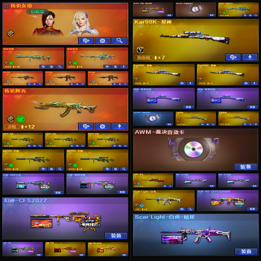 【陕西一区】【幻神三件套】【幻神7皮】【星神三件套】【裁决三件套】【白虎三件套】【金色蔷薇三件套】【毒蜂】【异变清道夫】【斯泰尔-蝴蝶】【死亡之眼】【炼狱-迷你小钢】【幻灵套装X1套】【竞技荣光套装X4套】【夜魔套装X3套】【传说女帝】【传说灵眸】【传说圣灵】【传说梦魇】【传说暗裔】【传说暗裔】【传说辉光】【M200-幻神】【幻神-冠军之幻】【幻神-巅峰荣耀】【幻神-CFS2022】【幻神-青鹤】【幻神-丹凤】【幻神-纸灯龙皮肤】【M200-幻神-黄忠皮肤】【M200-幻神音效卡】【M200-竞技荣光】【Kar98K-星神】【星神-璀璨皮肤】【Kar98K-星神音效卡】【王者星神-觉醒版】【王者星神】【AWM-裁决】【AWM-裁决音效卡】【裁决-流光秘银】【Scar Light-白虎】【白虎-AG-CFPLS20冠军】【Scar Light-白虎-暗星】【Scar Light-白虎音效卡】【白虎-电玩蓝兔】【王者白虎-觉醒版】【QBZ03-金色蔷薇】【QBZ03-冠军之薇】【QBZ03-荣耀世冠白鲨】【QBZ03-AG-CFPLS19冠军】【金色蔷薇-纸灯龙皮肤】【QBZ03-金色蔷薇音效卡】【QBZ03-金色蔷薇音效卡】【QBZ-03-王者蔷薇-觉醒版】【王者芳薇-觉醒版】【王者芳薇】【M4A1-雷霆王者-觉醒版】【M4A1-青龙】【HK417-朱雀】【M14EBR-玄武】【M4A1-夜魔】【USP-雷暴】【柯尔特-冠军之特】【荣耀世冠-柯尔特】【柯尔特-竞技荣光】【COP 357-雷霆王者-觉醒版】【破空枪刃-夜魔】【Knife-冠军之刃】【黄金猫猫手套-白鲨】【炼狱-迷你小钢】【加特林-炼狱】【盘龙-悦心-觉醒版】【炼狱-悦蓝-觉醒版】【魂·炼狱-玩具枪】【汤姆逊-烈龙】【烈龙-云海游龙】【斯泰尔-蝴蝶】【毒蜂】【异变清道夫】【死亡之眼】【传说女帝】【电竞教官-云悠悠】【关小雨】【狐影】【荒漠琉璃】【司雨】【王者葵-惊若翩鸿】【王者玲珑-小乔】【王者凌霄】【王者潘多拉】【王者沙漠玫瑰】【王者樱-热浪之夏】【修道士】【鹰】【影豹】【雨棠】【月兔特工】【云海玲珑】【炫】【隼】【魅影】【M4A1-雷神】【雷神-荣耀之魄】【雷神-宠儿-2019MVP】【M4A1-雷神-巅峰荣耀皮肤】【雷神-R.LGD-CFPLS18冠军】【雷神-冠军之魄】【M4A1-战神赵云】【雷神-荣耀世冠AG】【雷神-烈虎皮肤】【雷神-虎将】【M4A1-雷神音效卡】【AK47-火麒麟】【火麒麟-白虎】【火麒麟-冠军之心】【火麒麟-华夏之心】【火麒麟-巅峰荣耀】【火麒麟-荣耀世冠AG】【火麒麟-战神关羽】【火麒麟-雷神】【AK47-火麒麟音效卡】【M4A1-黑骑士】【黑骑士-冠军之势】【黑骑士-少林】【黑骑士-AG-S4冠军典藏】【黑骑士-CFS2021】【黑骑士-战神马超】【M4A1-黑骑士音效卡】【M4A1-黑龙】【黑龙-冠军之武】【黑龙-墨子皮肤】【黑龙-能量核心】【M4A1-黑龙音效卡】【Barrett-毁灭】【毁灭-荣耀之怒】【毁灭-冠军之怒】【毁灭-BEAN-2020MVP】【毁灭-CFS2020】【毁灭耀金皮肤】【毁灭-战神张飞】【毁灭-黑大圣皮肤】【毁灭-魔灵皮肤】【Barrett-毁灭音效卡】;
